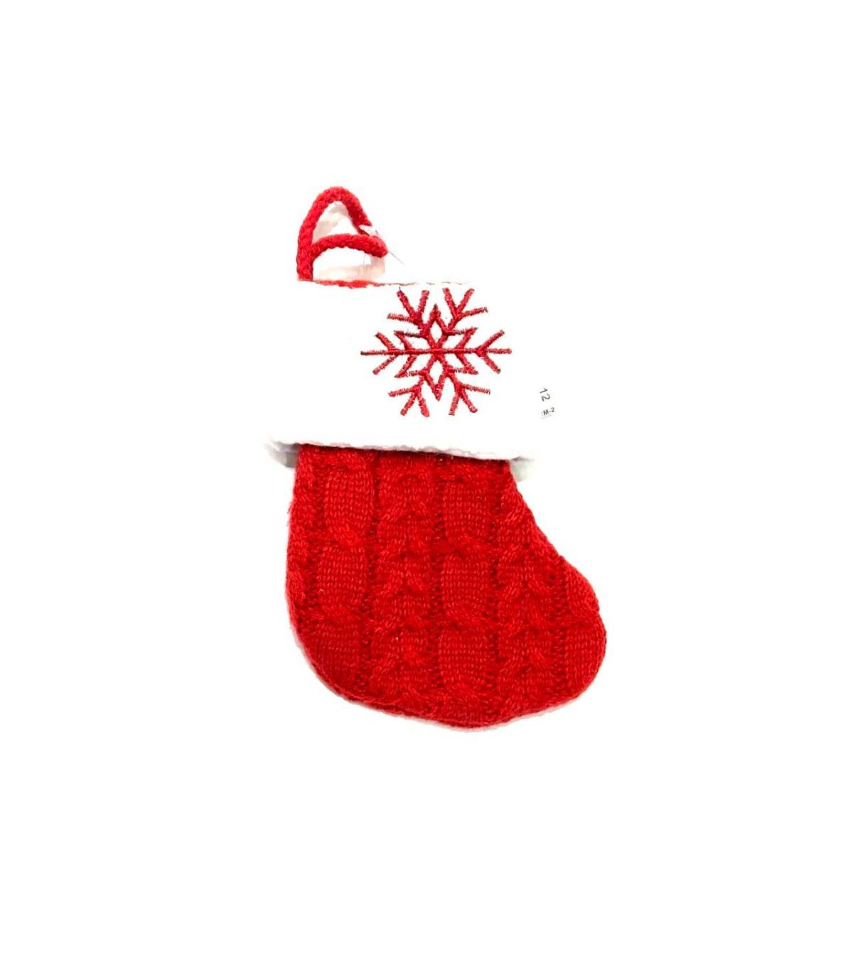 Una bota decorativa navideña de lana tejida de 20 cm de alto y 14 cm de ancho para decorar tu casa en Navidad con toda la magia de Alparamis.