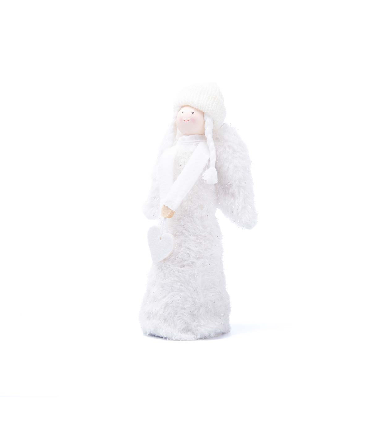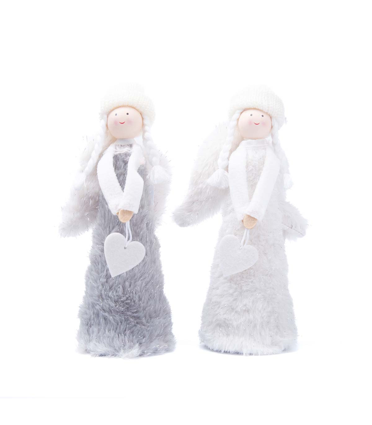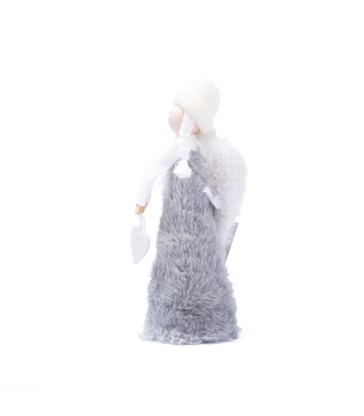 Un adorno de tela fieltro de 22 cm de alto con forma de ángel. Viene en colores blanco y gris. Ideal para decorar en Navidad.