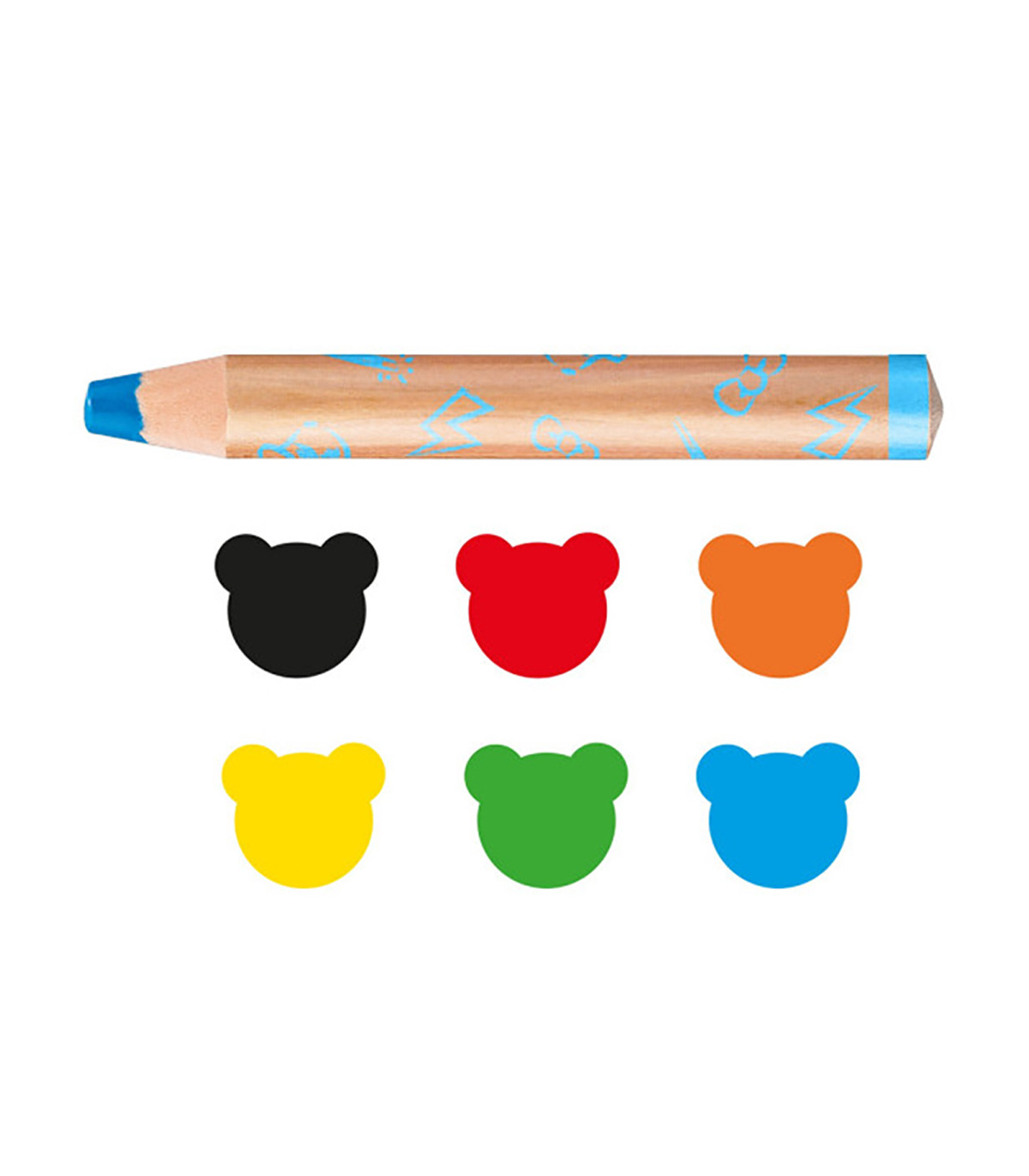 Caja de 6 lápices Baby para chicos a partir de los 12 meses. Lápiz, crayón y acuarela en un único lápiz. Cuerpo extra grande de 10 mm de diámetro, fácil de agarrar. Acuarelables si se mezclan con agua y pincel. Sacapuntas incluido. Colores brillantes y la