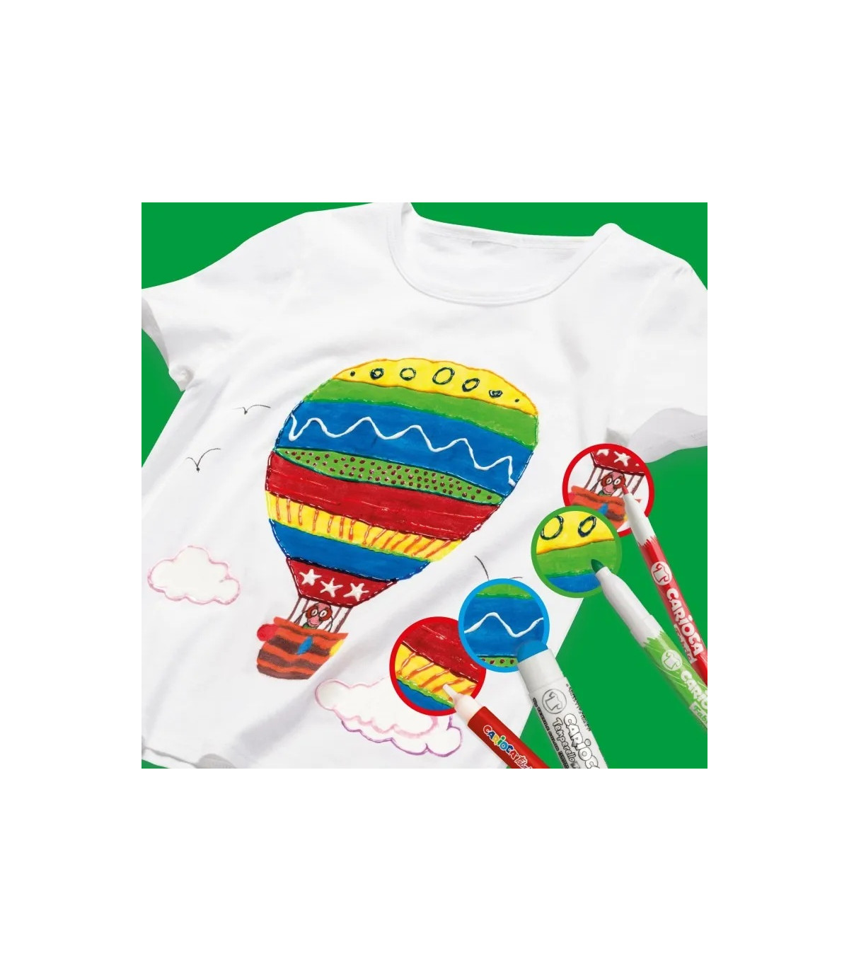 Una caja de 12 marcadores Fabric para tela. Punta Maxi de 6 mm. Tinta especial para tela. Una vez aplicados, los colores son indelebles. Para mantener una mayor duración y brillo de los colores se aconseja planchar sobre el reverso del dibujo terminado.