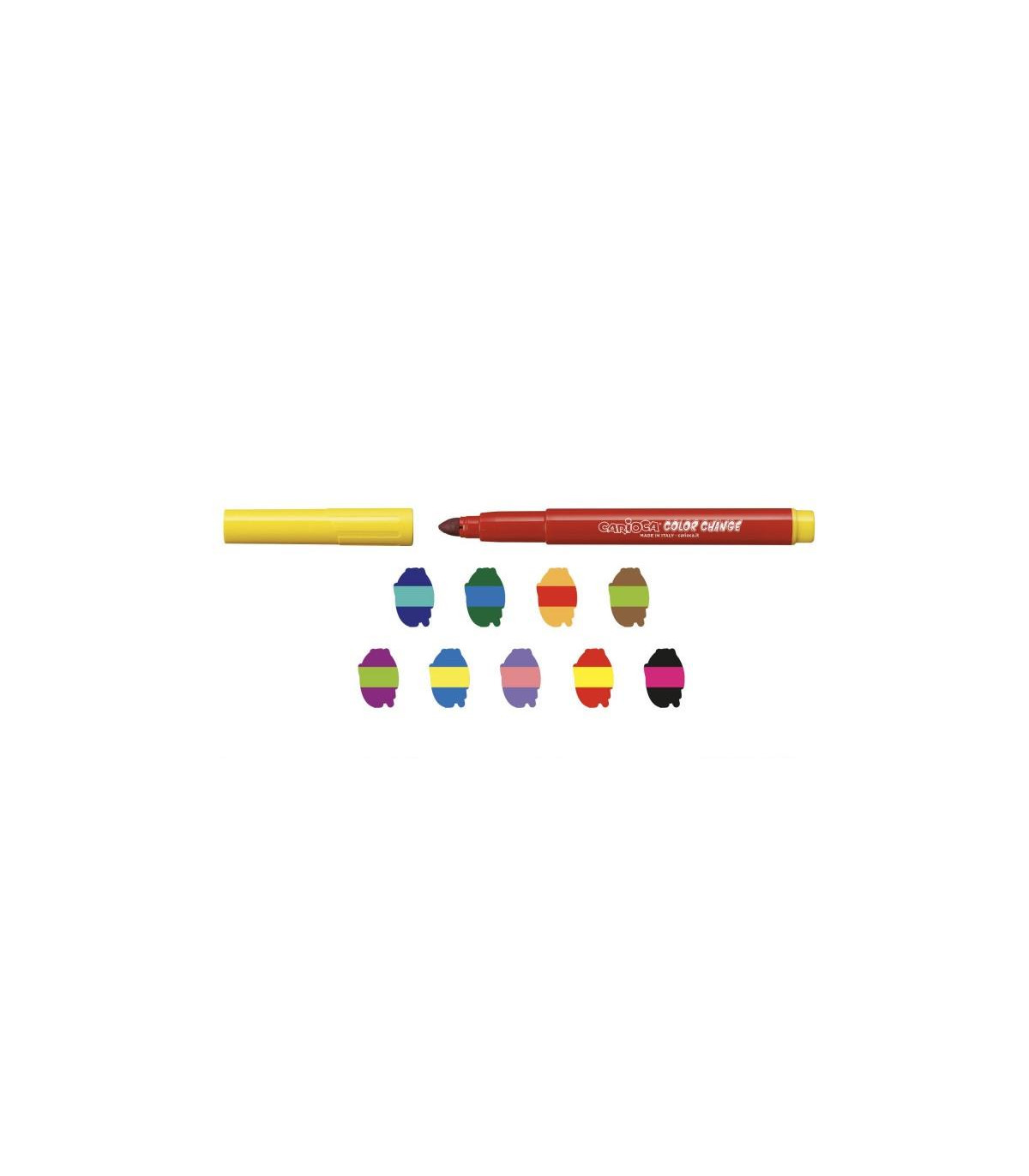 Una caja de 10 marcadores Magic con tinta mágica que cambia de color. Usando el marcador Magink incluido, se pueden conseguir dos colores o borrarlos. Punta Maxi de 6 mm con tapa ventilada anti asfixia.