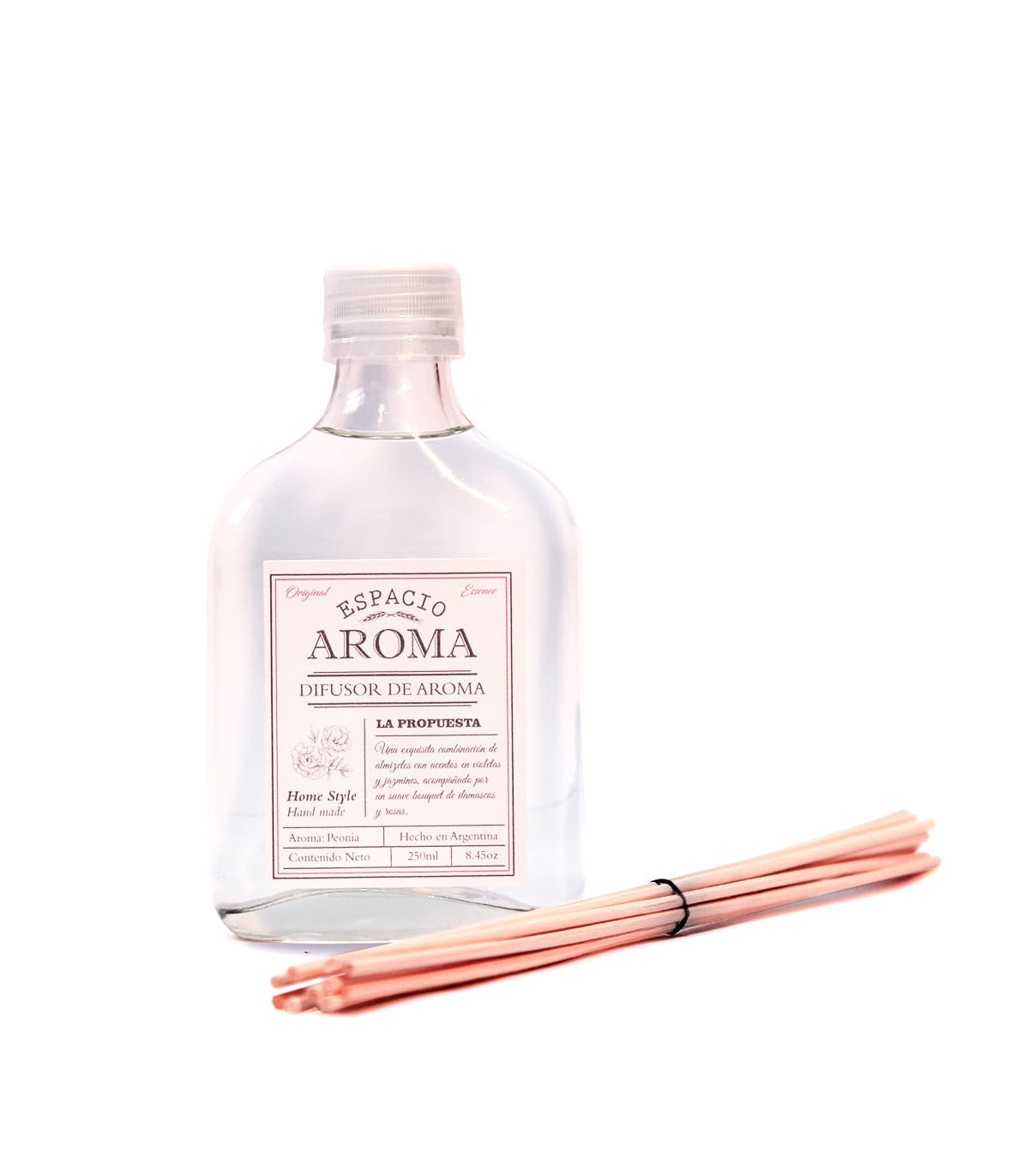 Difusor de ambientes de 250 ml. Simples y elegantes, aromas muy persistentes. Con un juego de 8 varas de bambú que liberan su aroma en el ambiente. Tiempo de duración, 2 a 3 meses. El envase de vidrio puede ser...