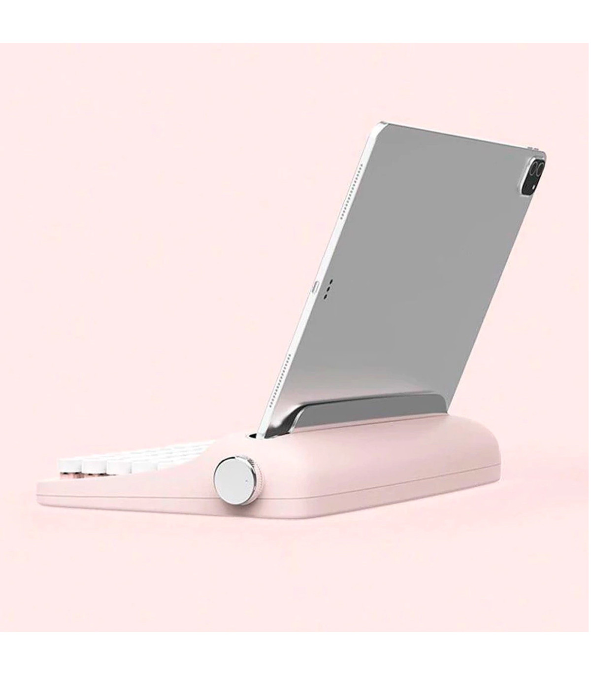 Teclado inálambrico con conexión Bluetooth 5.0 que usa 2 pilas AAA, no incluidas. Tratado con resina que evita manchas. 84 teclas de estética vintage y soporte para dispositivos móviles de hasta 12. Compatibile con Android, IOS, Windows.