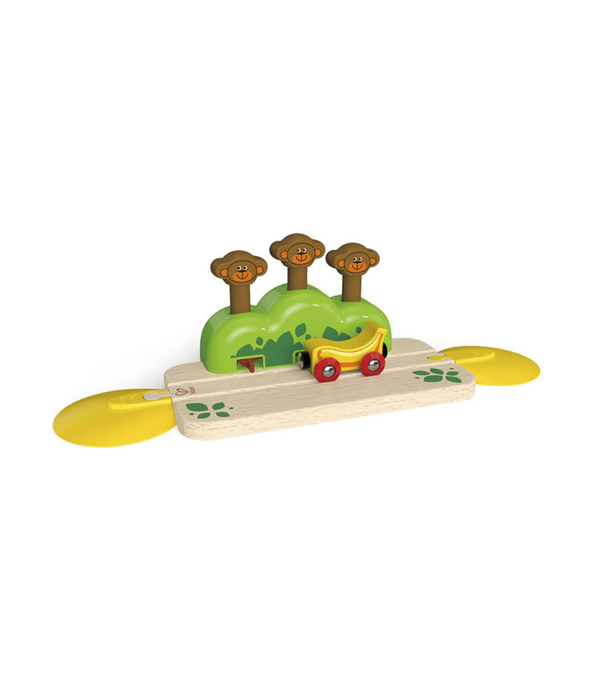 Tres monos se esconden en la selva esperando su oportunidad para atrapar una banana. Mirá cómo saltan cuando pasa el vagón.