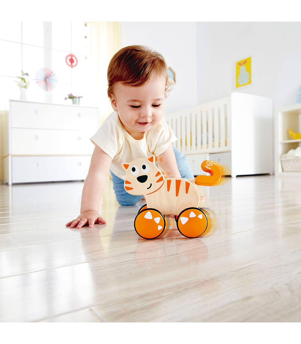 Al empujar o arrastrarlo suavemente, los colores del arcoiris se mezclan y mantienen a los peques en movimiento.