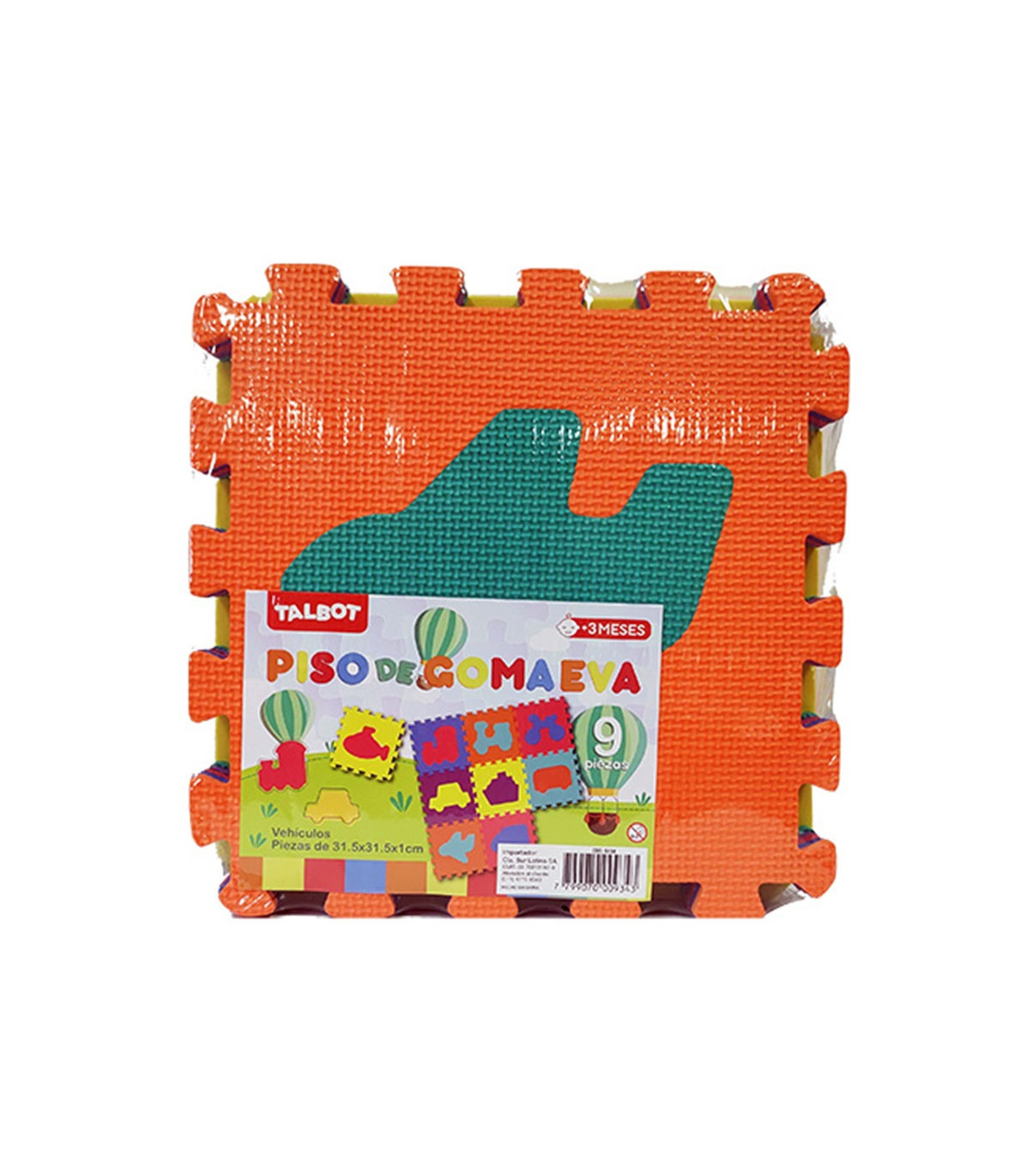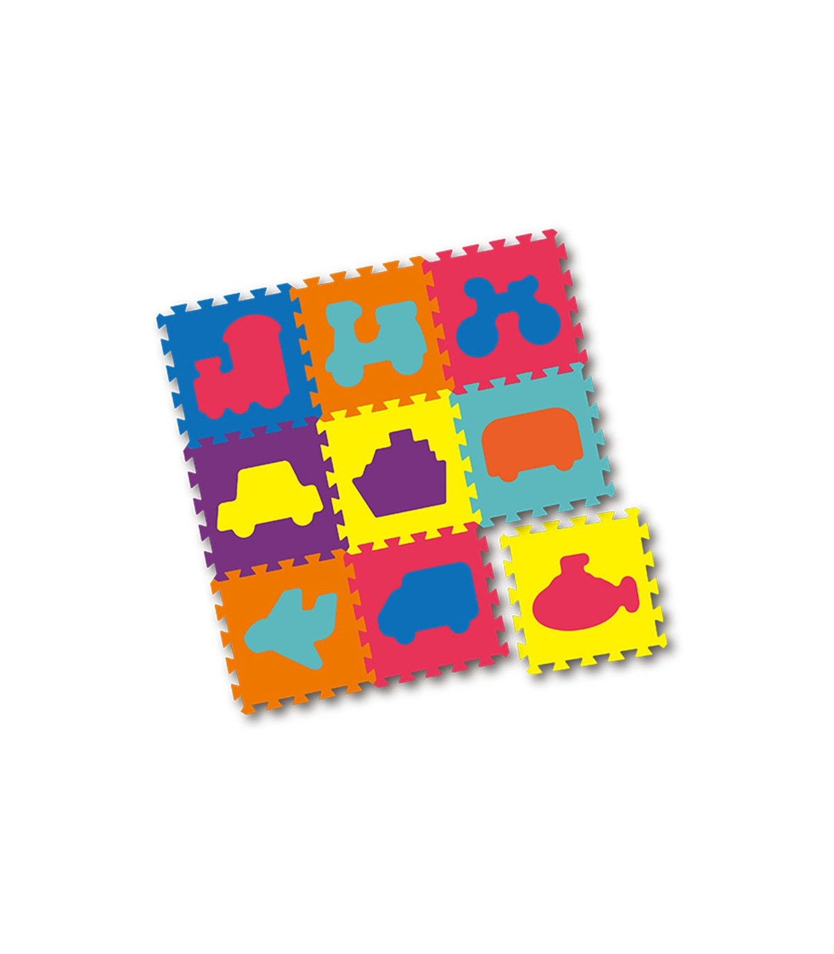 9 piezas encastrables de goma eva de 31,5 cm cada una, para armar un piso de 94 x 94 cm con figuras de distintos vehículos. Ideal para estimular a los más chicos a conocer el mundo que los rodea a través del juego.