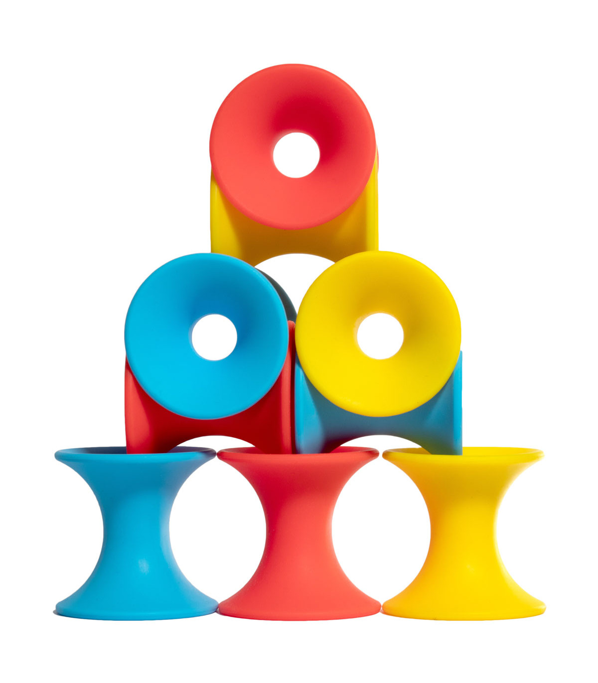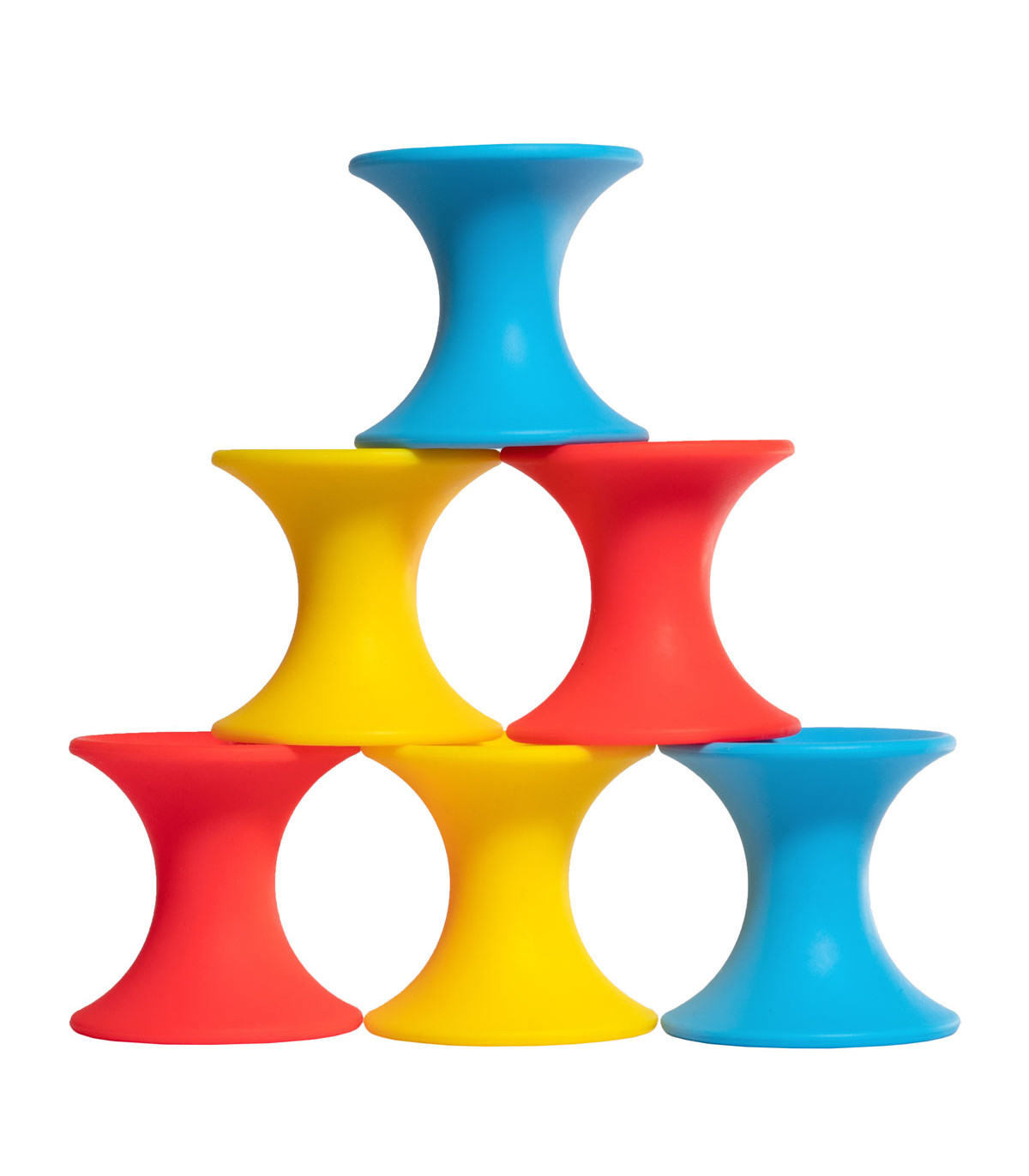 Una caja con un mix de 12 Bilibo Classic en 6 colores: 2 rojos, 2 azules, 2 amarillos, 2 verdes, 2 naranjas y 2 violetas.