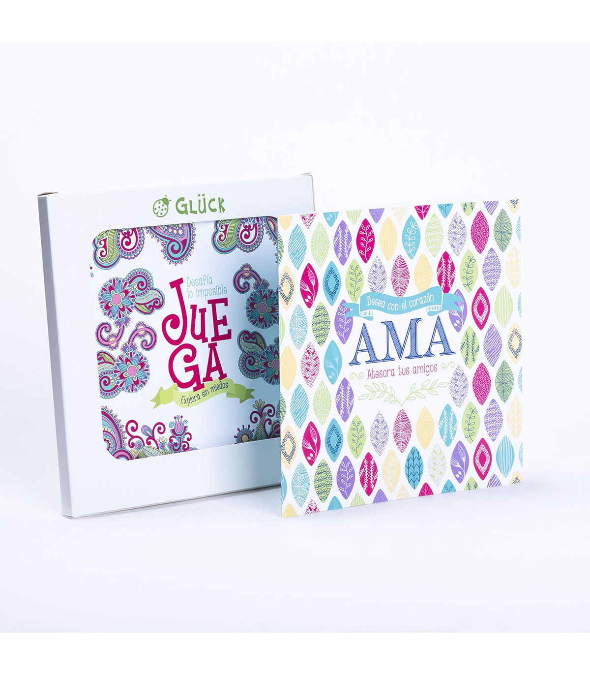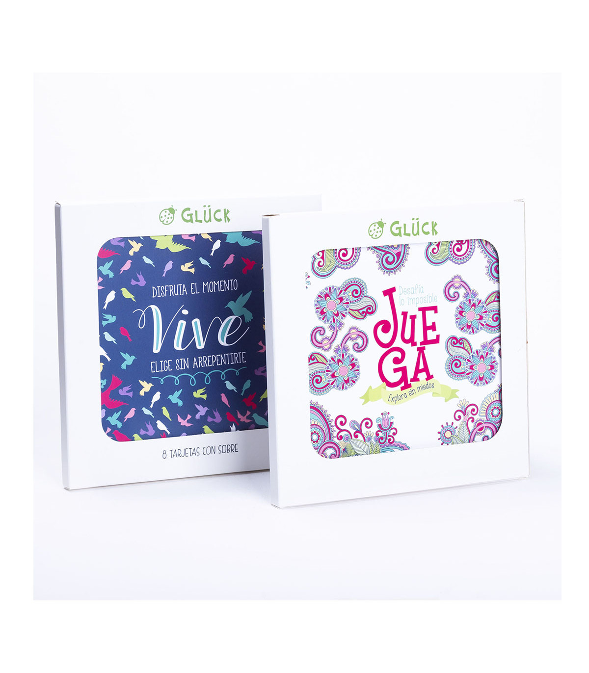14 paquetes de 8 tarjetas tipo libro de papel ilustración de 115g, tapa y contratapa, con diseños surtidos de la colección Simples Secretos. Incluye sobres blancos.