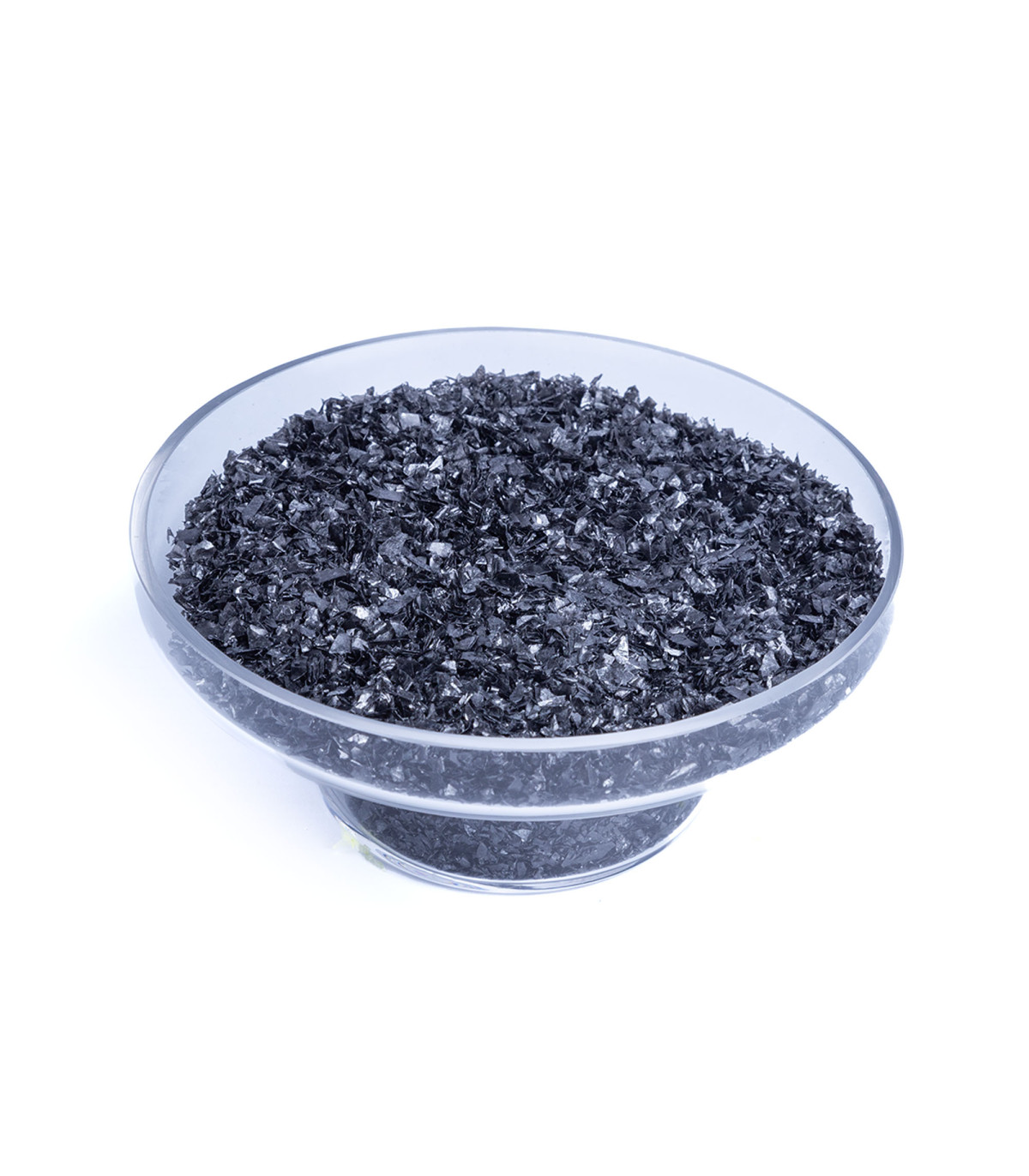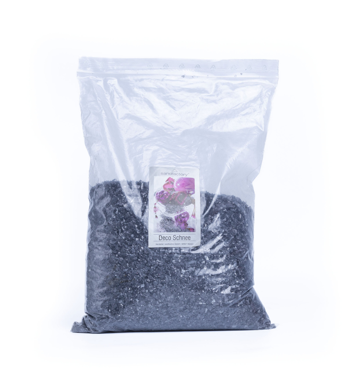 Una bolsa de 525 gramos de flocs plásticos decorativos color negro. Ideal para decorar en Halloween.