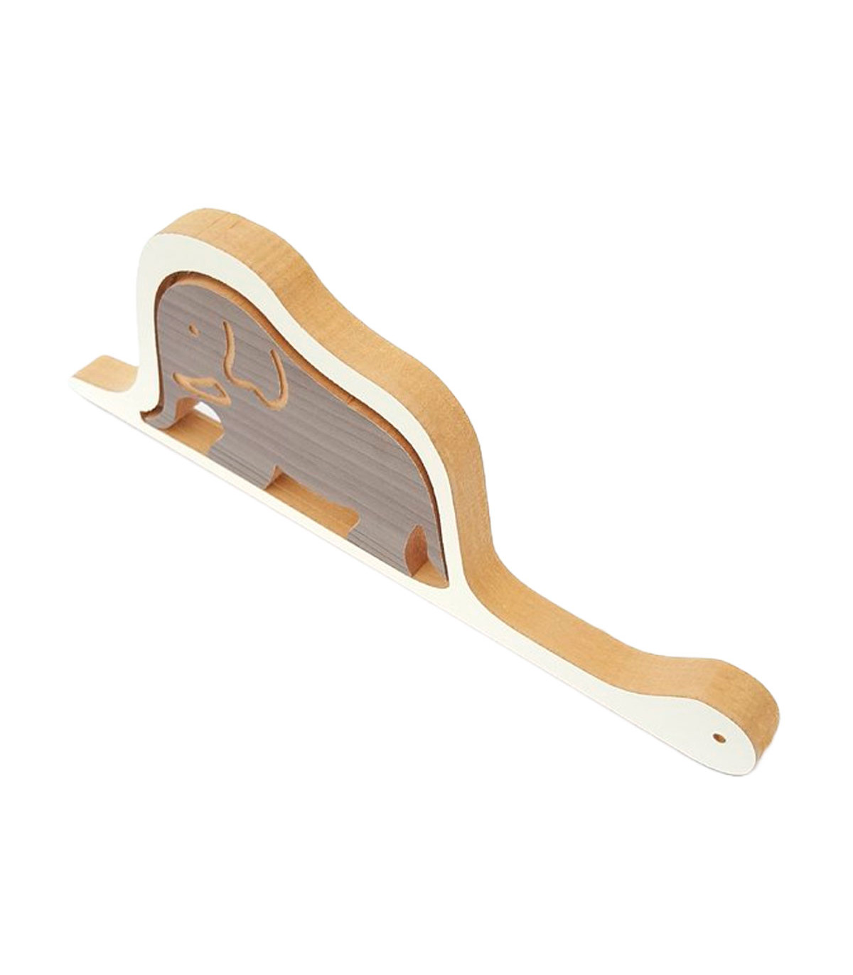 Este adorno de 30 cm de largo y 11 cm de alto en madera melamina rememora la imagen del Principito del elefante en el estómago de una boa que tiene forma de sombrero. Color blanco y seda notte. Hechos en madera recuperada de los sobrantes de muebles hecho
