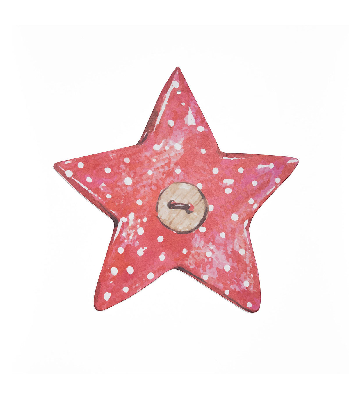 Un adorno de madera de 10 cm de alto para decorar el árbol de Navidad. Viene en 4 variedades: estrella, reno, pino y copo de nieve.