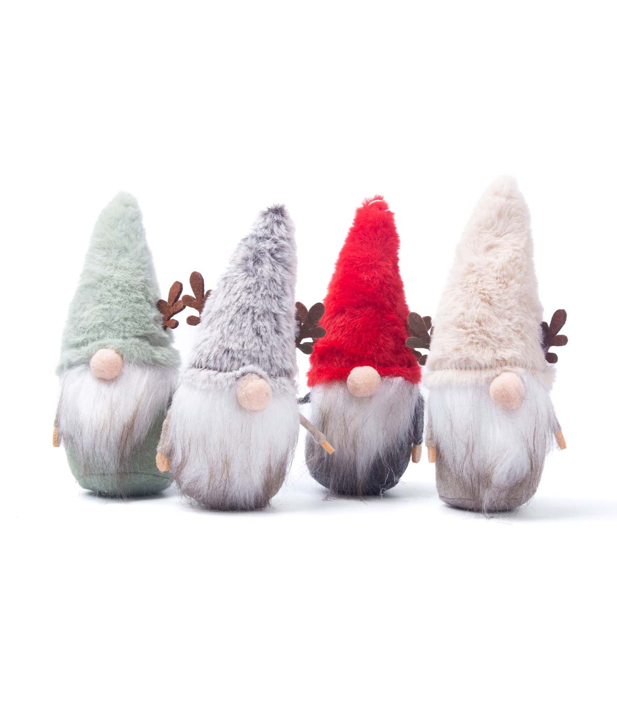 Un adorno de tela de 18 cm de alto con forma de duende navideño en 4 colores surtidos: rojo, verde, gris y crema. Ideal para decorar el árbol en Navidad.