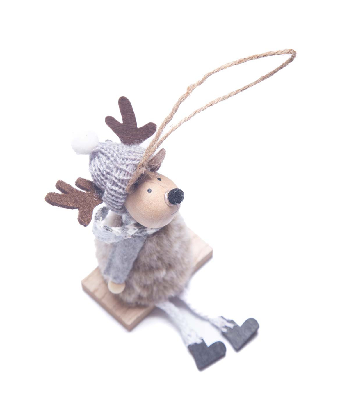 Un adorno de madera para colgar de 12 cm de alto en madera, poliester, poliestireno y PET. 8 diseños en tonos marrones: gnomo con esquíes, reno con esquíes, trineo, casita, regalo, hongo, gnomo con sombrero, reno. Ideal para decorar el árbol de Navidad.