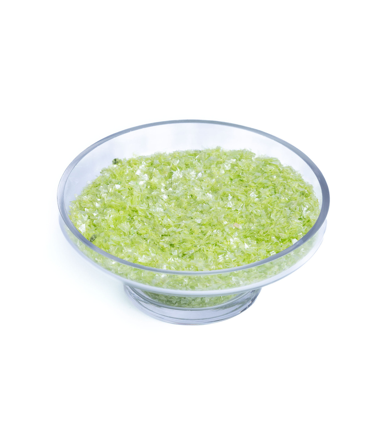 Una bolsa de 525 gramos de flocs plásticos decorativos color verde. Ideal para decorar en Halloween.