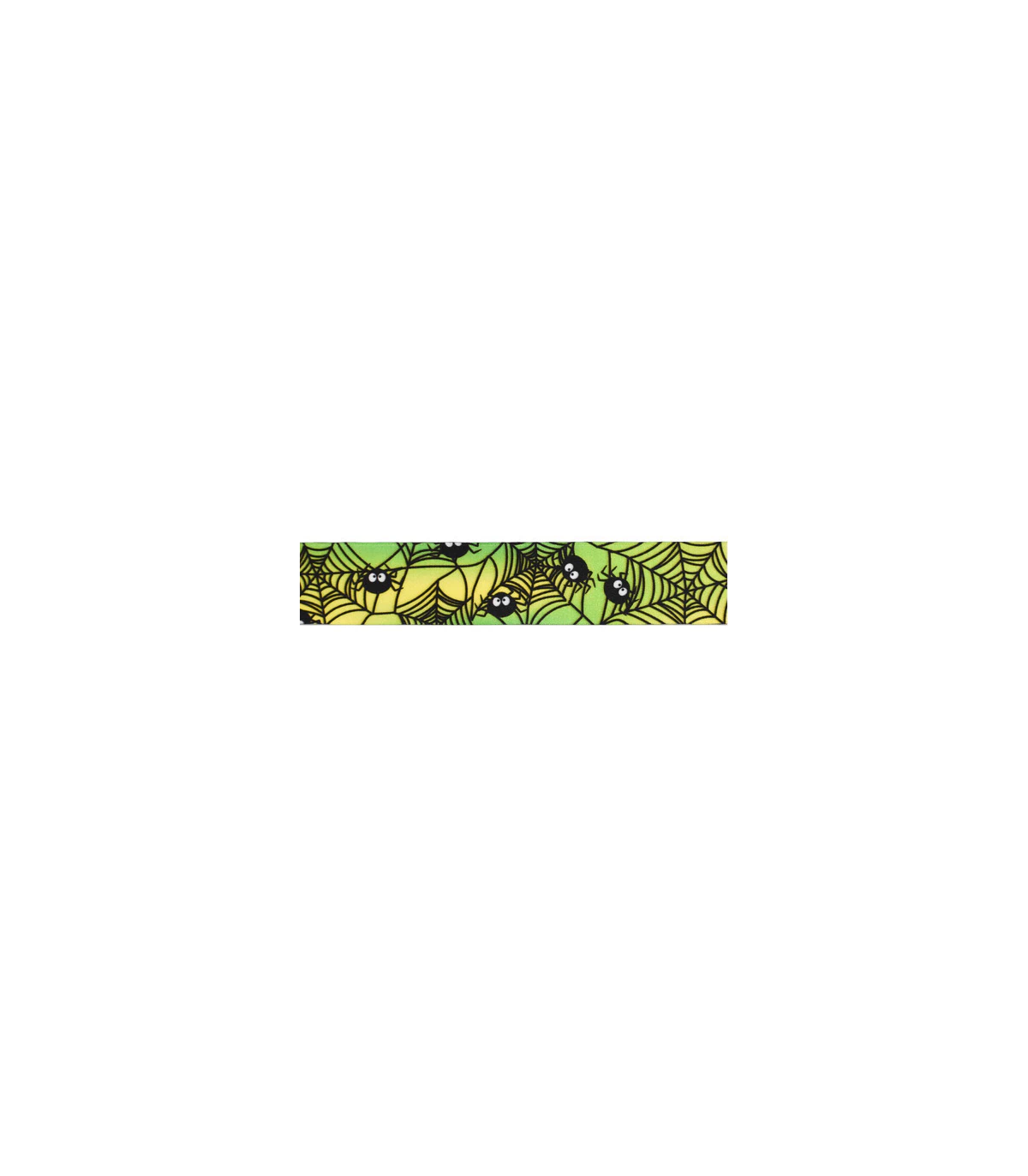Una cinta de tela de 4 cm de ancho y 10 metros de longitud con motivos de arañas y telarañas de Halloween.