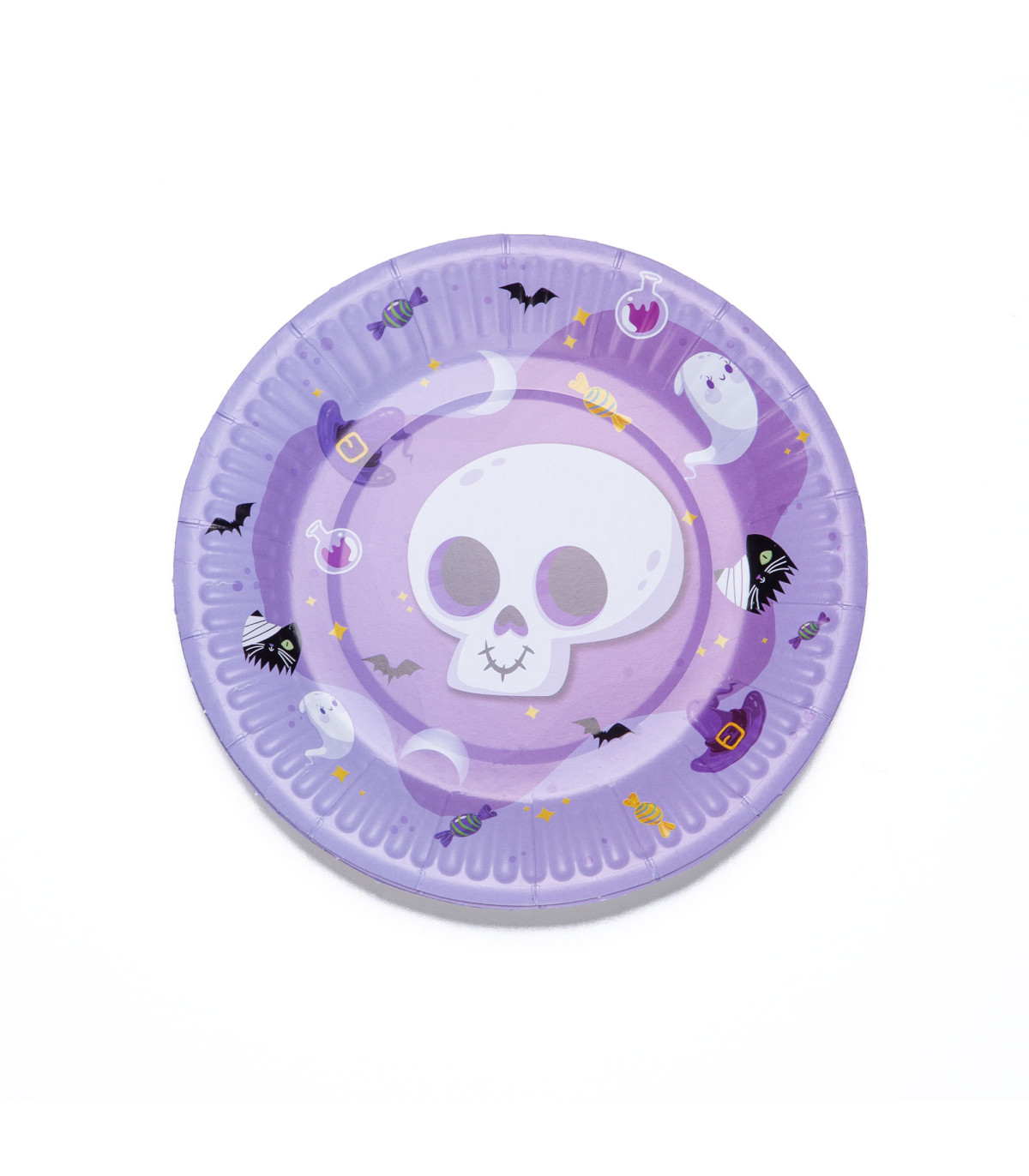 8 platos de cartón de 18 cm de diámetro para decorar la mesa en la fiesta de Halloween.