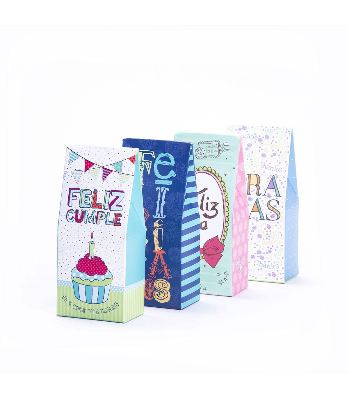 Un set con la colección completa de las cajas jabón Ocasiones Especiales de las Pequeñas Sorpresas de Glück. Incluye 5 cajas de cada uno de los 4 diseños de la colección. Cada caja contiene un jabón vegetal redondo de 48 g de fragancia Verbena.
