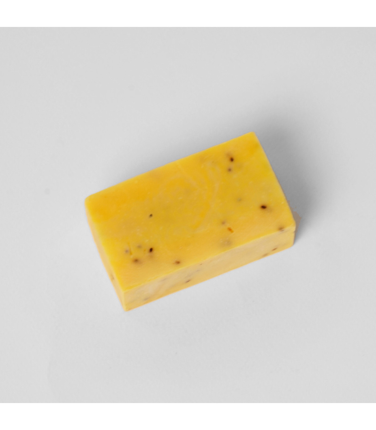 Jabón 100% natural de 115 g hecho con maracuyá que tiene propiedades calmantes que suavizan y protegen la piel de agresiones externas. Contiene semillas de chía que contribuyen a la producción de colágeno que ayuda a reafirmar la piel.