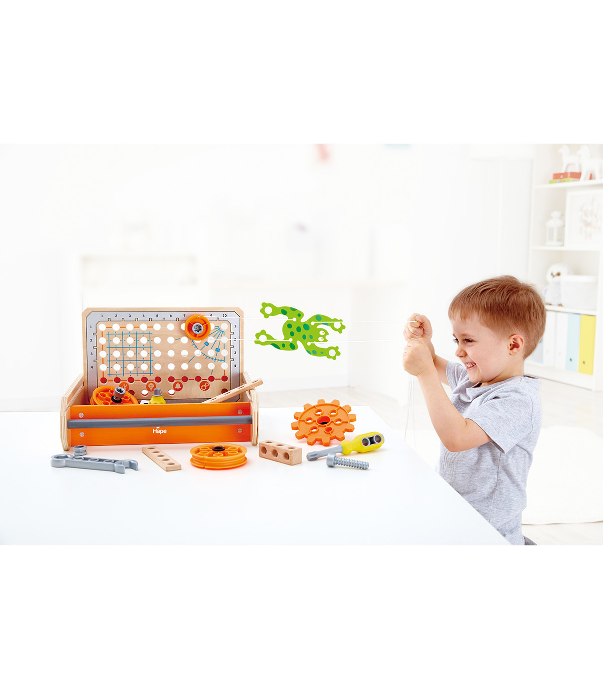 Las cosas buenas vienen en cajas pequeñas. Esta genial y compacta caja de herramientas para jóvenes inventores contiene todo lo que los niños necesitan para realizar más de 6 emocionantes experimentos que les enseñarán acerca de la ciencia y la invención.