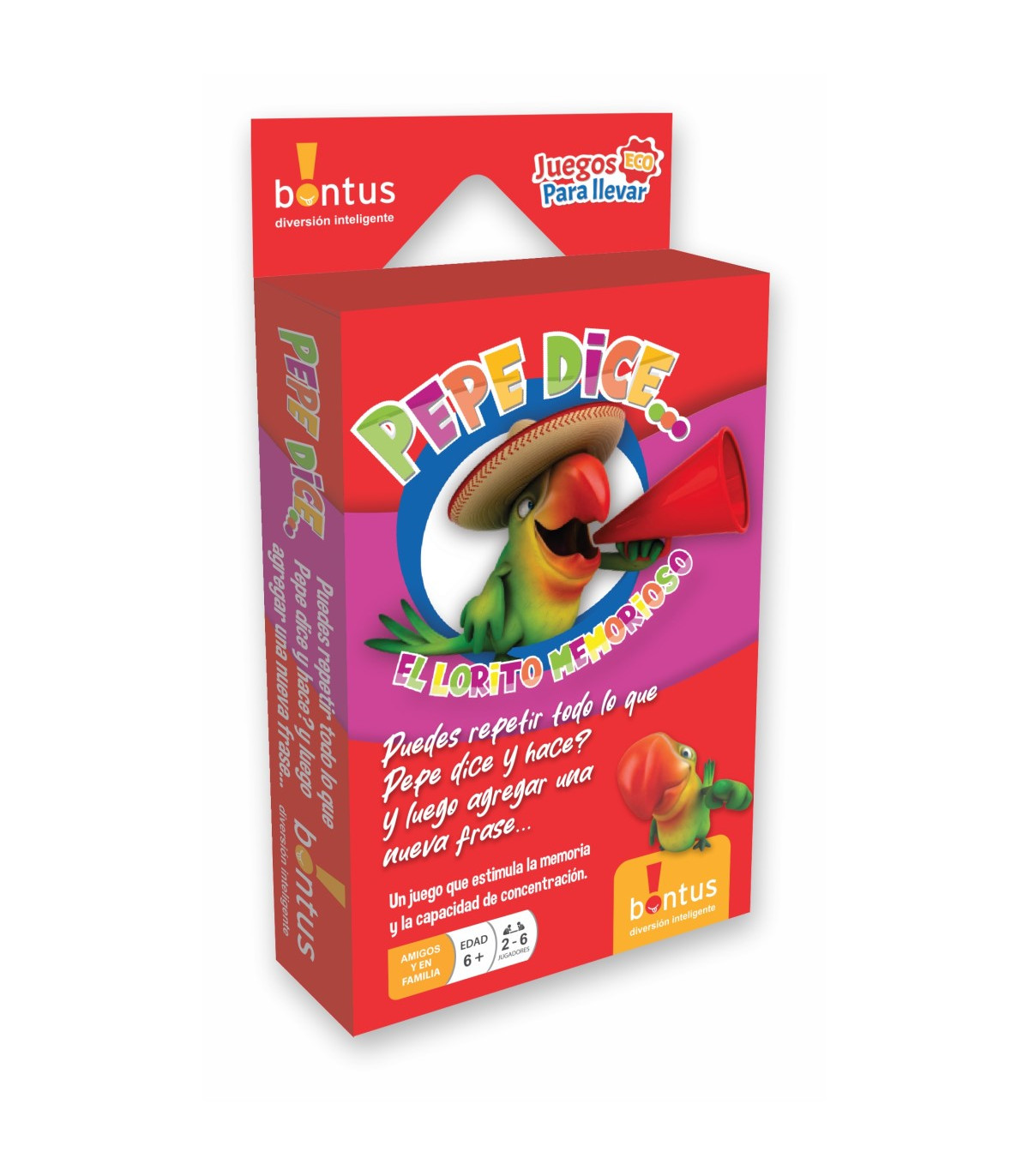 Un Juego que estimula la memoria y la capacidad de concentración. Contiene 54 cartas con 108 actividades, un talonario anotador e instrucciones. 2 a 6 jugadores a partir de 6 años.