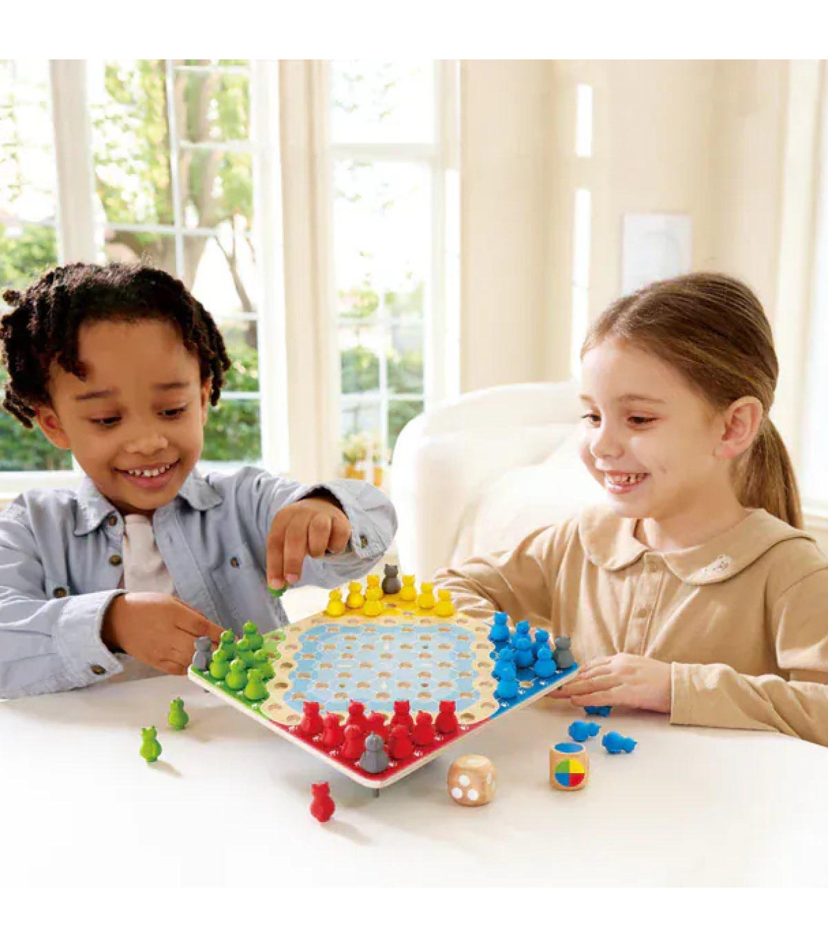 Este juego de mesa 3 en 1 combina desafíos de equilibrio con versiones modernas del Ludo y las Damas Chinas. Con coloridas piezas con forma de gato y una mecánica atractiva, fomenta la estrategia, la coordinación y la competencia lúdica.
