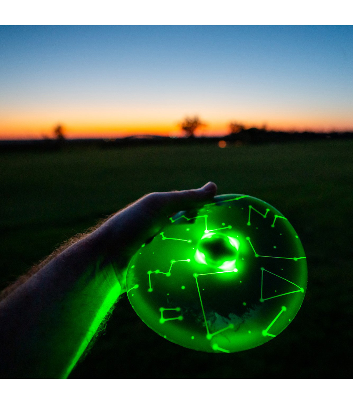 Wingman UFO es el disco volador más divertido para jugar de día o de noche. Cuenta con luces LED que se activan al volar, haciendo que cada lanzamiento sea un espectáculo. Fabricado en silicona suave, es seguro para jugar tanto en interiores como exterior