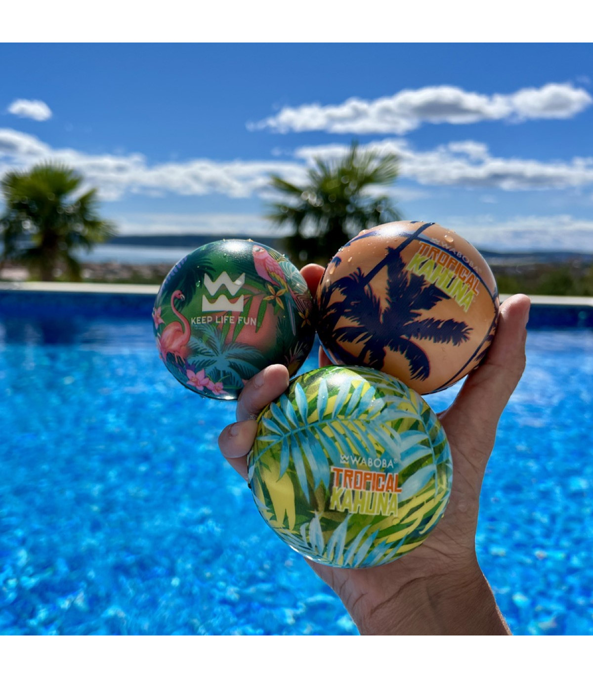 Siempre es verano con la Tropical Kahuna. Una pelota grande de espuma que rebota en el agua. Ideal para la pileta, el mar o el lago. Cuanto más se moja, mejor salta. Perfecta para jugar en familia. Tamaño: 9 cm. Edad: +5