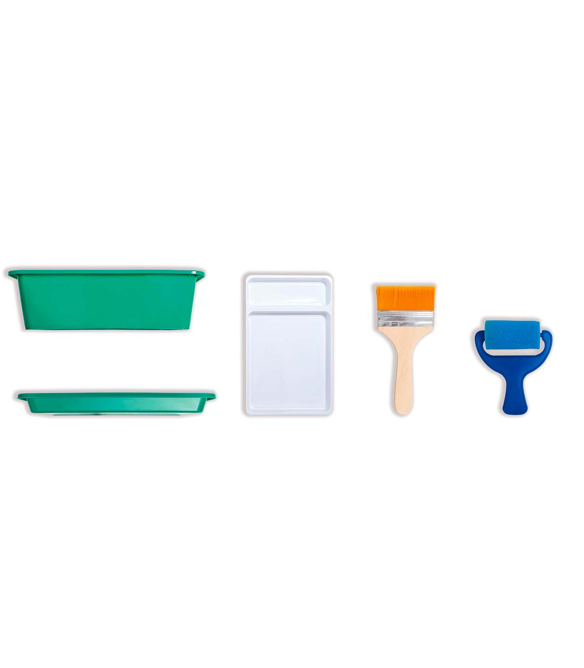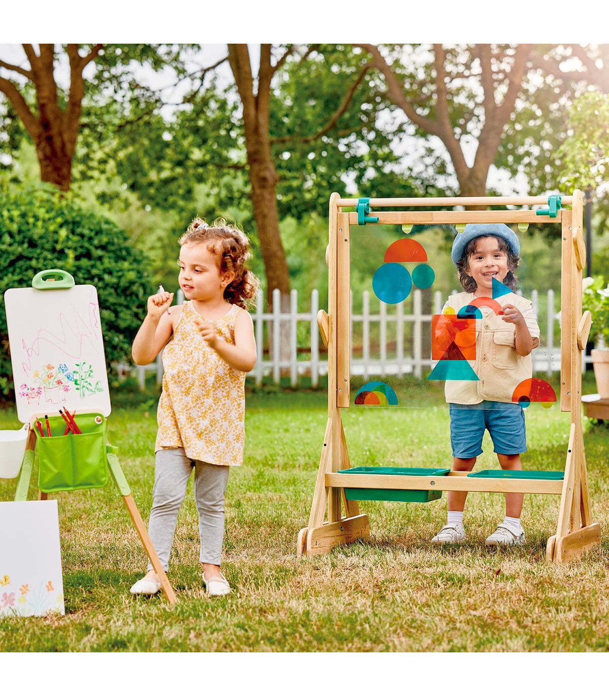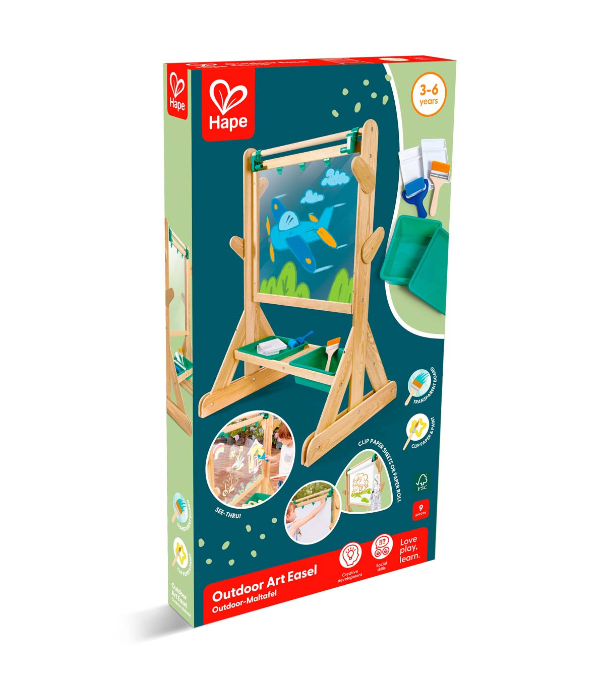 Una pizarra de madera duradera y anticorrosiva que resiste a la naturaleza, ideal para desplegar la creatividad al aire libre. Incluye un pincel, un rodillo de goma espuma, dos bandejas de pintura, dos clips para rodillo de papel y tres clips para hojas.
