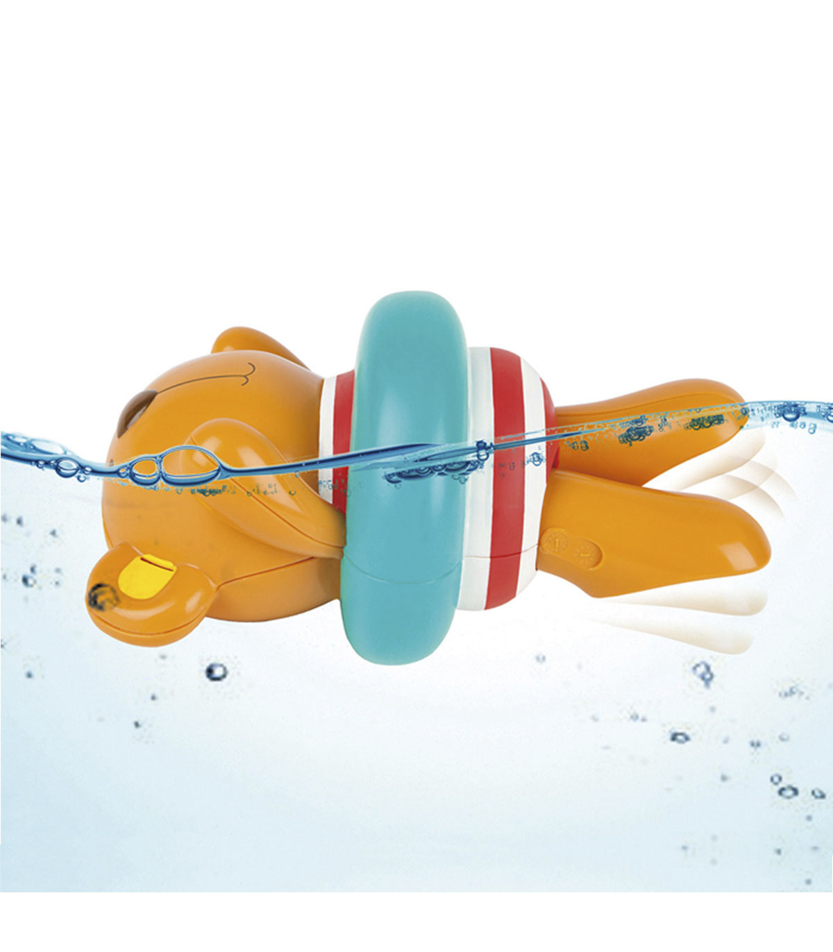 Dale cuerda al osito nadador y vas a ver como empieza a dar vueltas, haciendo que los más chicos se diviertan con su encantador estilo.