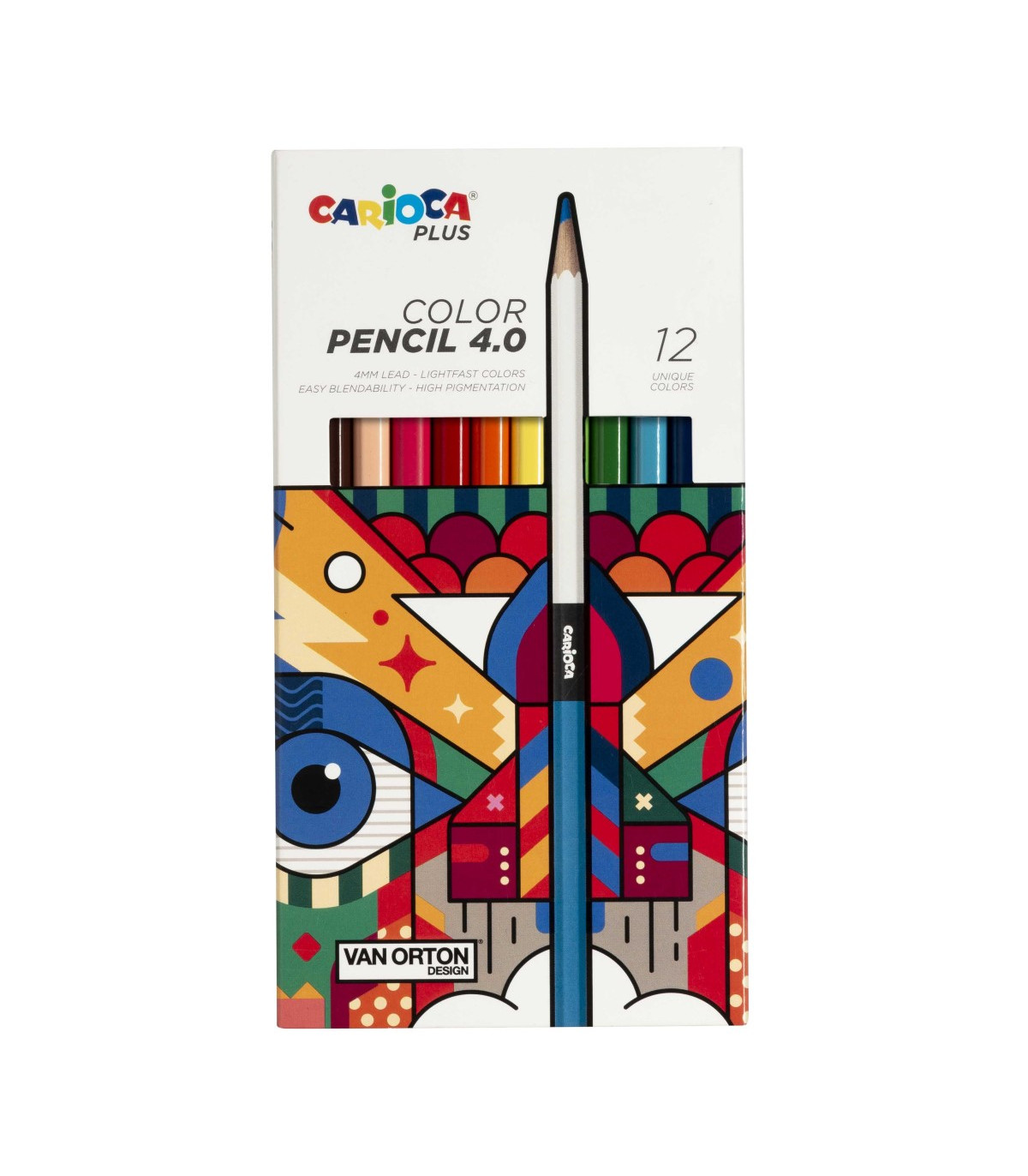 Una caja con 12 lápices de colores de madera y mina de calidad superior gruesa de 4 mm. Excelente adherencia al papel con muy poca pérdida de pigmento. Colores vibrantes y resistentes a la luz.