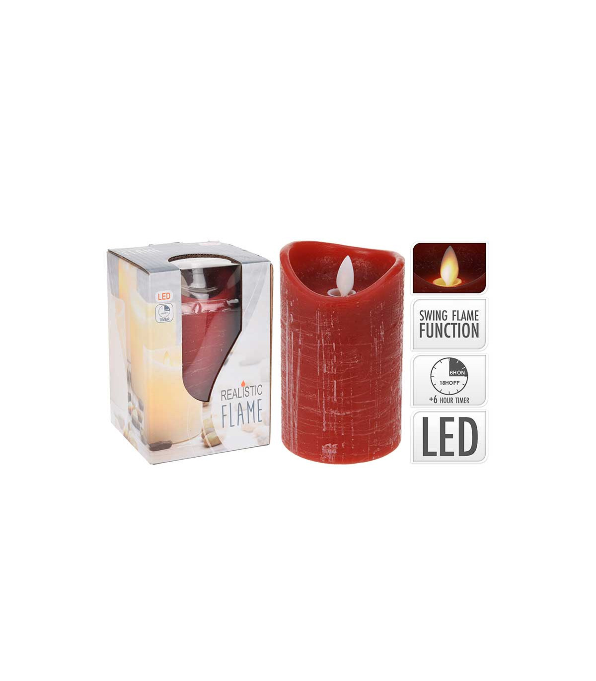 Una vela de cera con llama realista de LED a pila con efecto de flameo y función de temporizador para apagado automático.