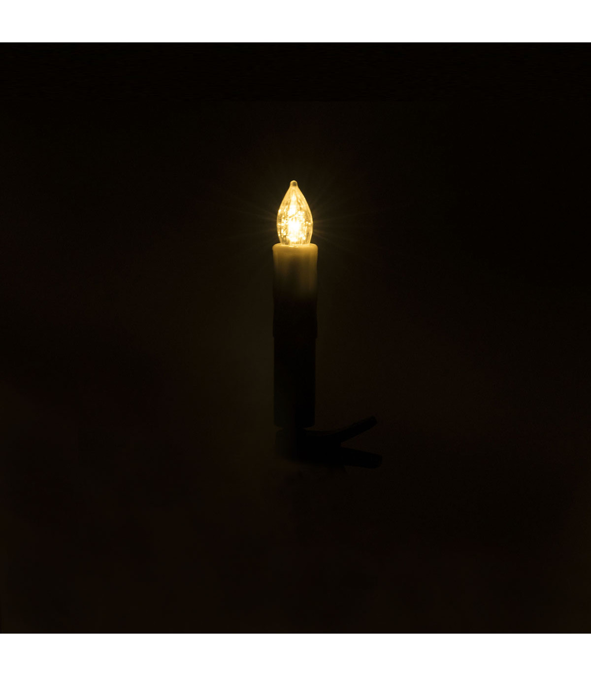 Set de 10 velas de luz LED cálidas e inalámbricas, color blanco con clip verde. Cada vela lleva 1 pila AAA, no incluida. Se operan con un control remoto que viene incluído.