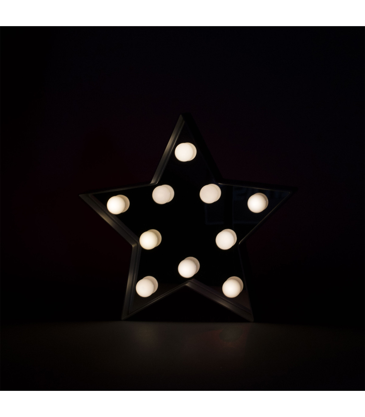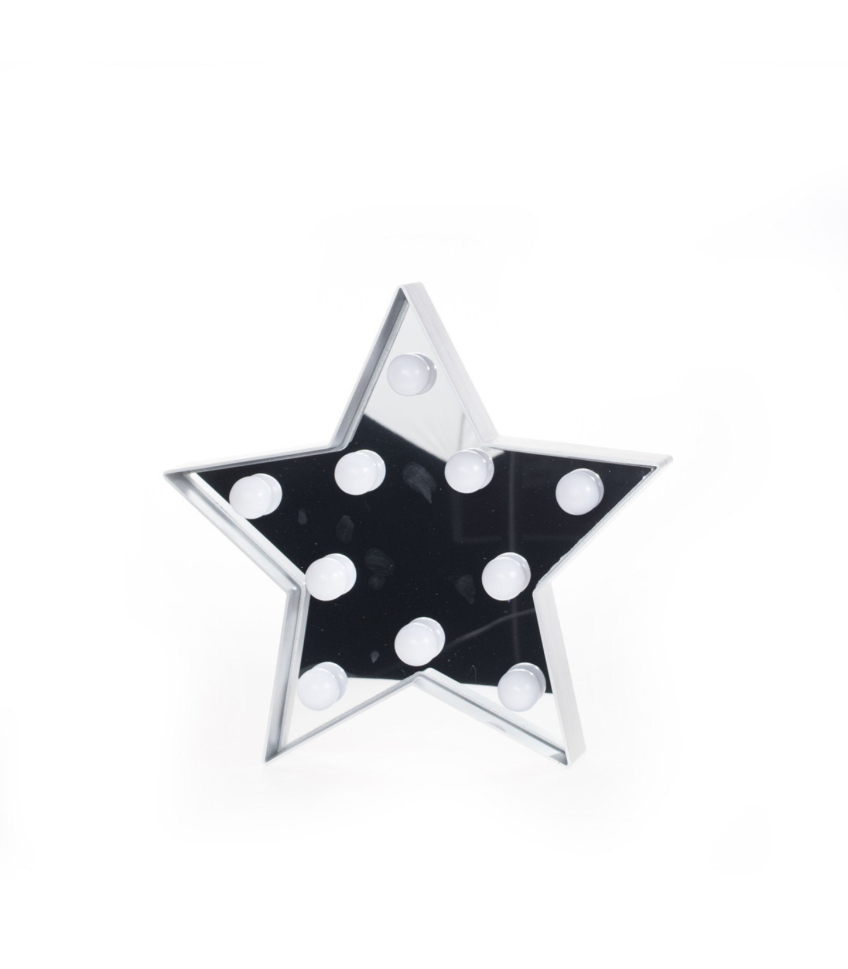 Cartel luminoso color plateado con forma de estrella con luces LED cálidas. Funciona con 2 pilas AA, no incluidas