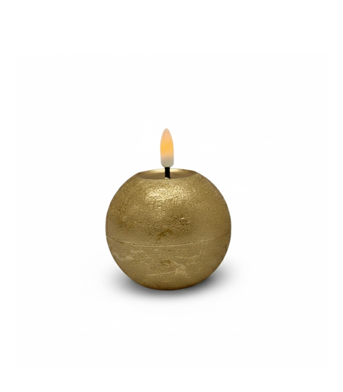 Una vela esférica de luz LED blanca cálida de 8 cm de diámetro, con función Touch Top que se prende y apaga al tocar con dos dedos la parte superior de la vela. La llama titila con un efecto realista. Usa 2 pilas AA no incluidas. Con switch ON-OFF.