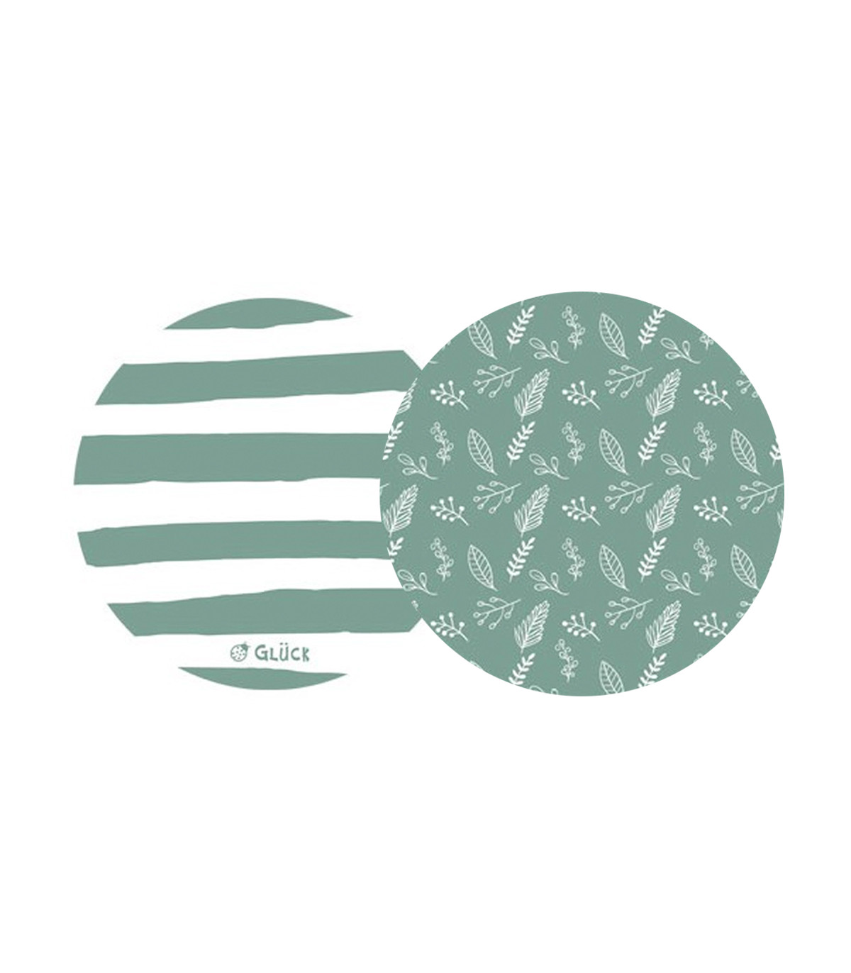 8 portavasos de cartón de 10 cm de diámetro impresos a cuatro colores. Estampado de hojas de un lado, rayas del otro.