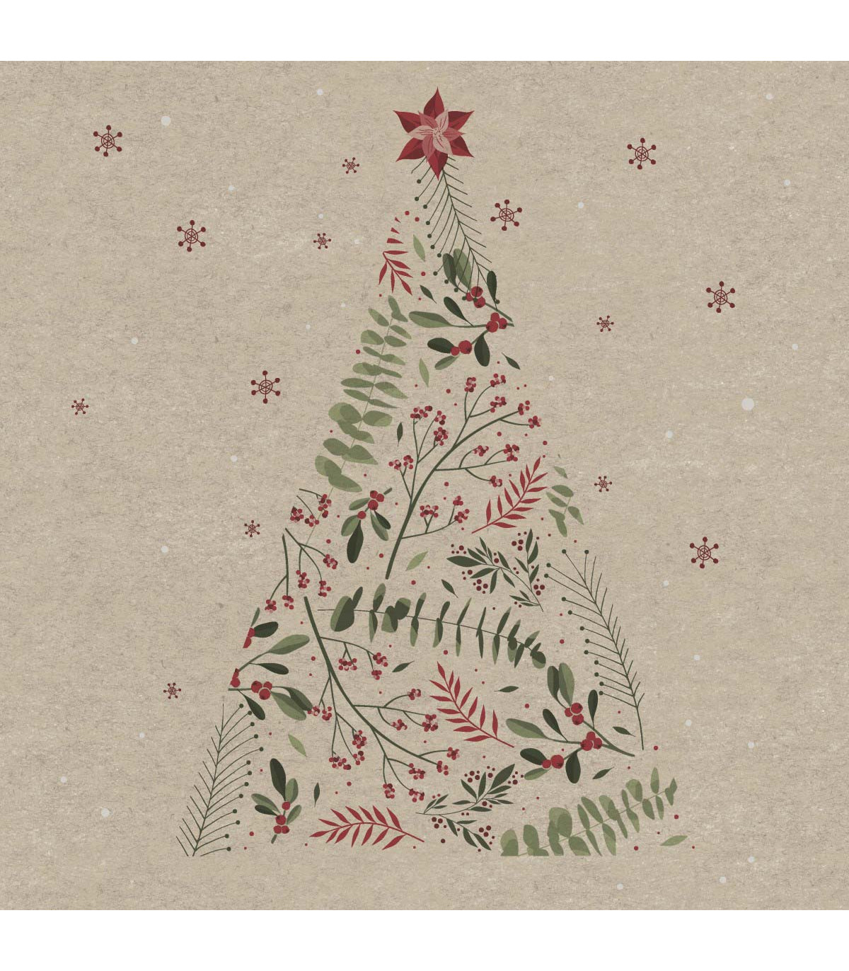 20 servilletas de papel reciclado para decorar la mesa de Navidad, de 33 x 33 cm, dobladas a 17 x 17 cm y empaquetadas. El papel es certificado FSC (forestación responsable), blanqueado sin cloro y colores de base acuosa.