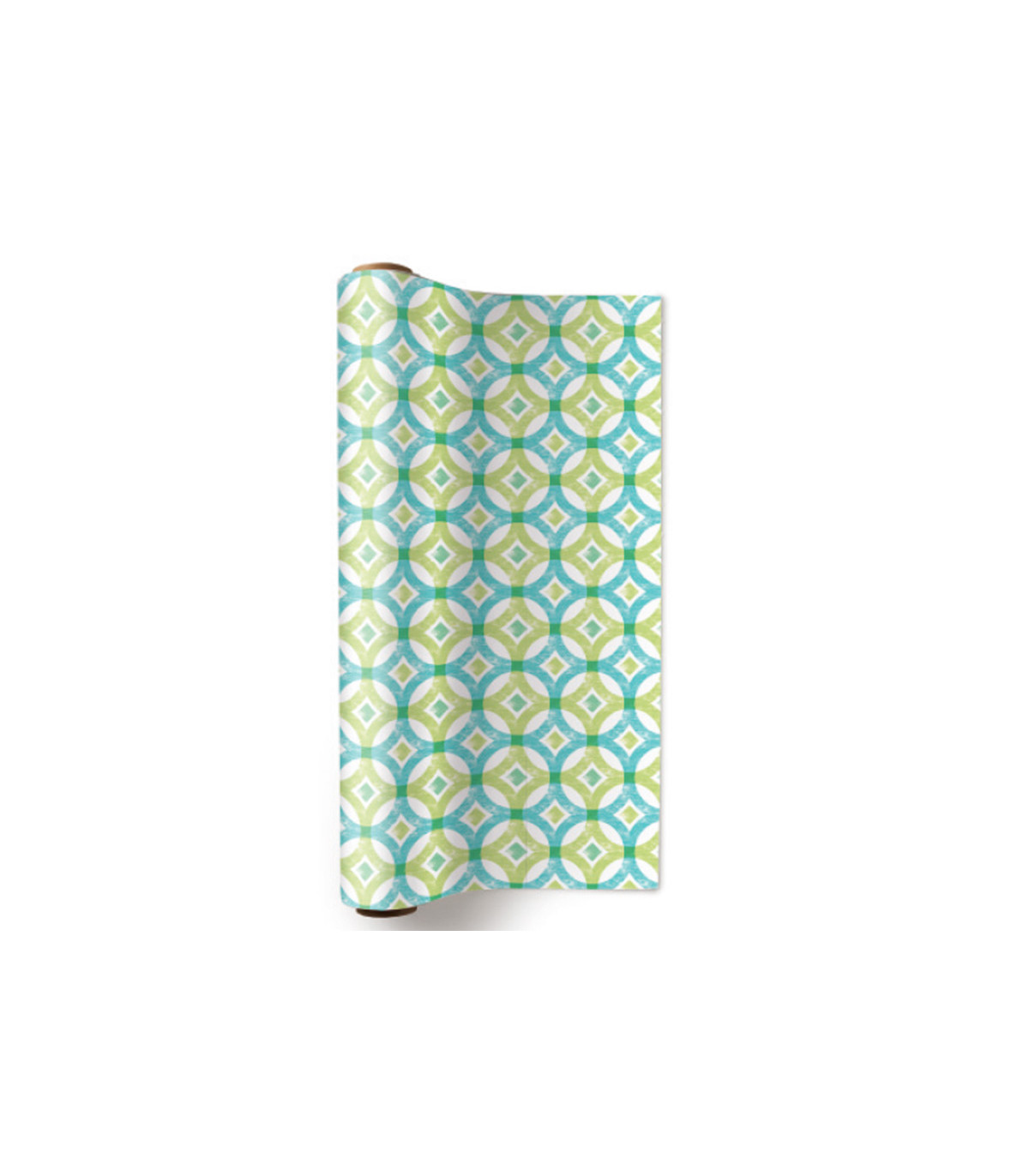 Un camino de mesa de papel de 400 x 32.5 cm. Diseño: Around & Around. El papel no tiene costuras, es símil textil de alta calidad certificado FSC (forestación responsable), blanqueado sin cloro y colores de base acuosa.