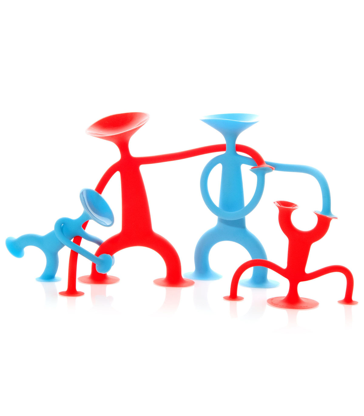 Una familia completa de los Oogi con 2 Oggi grandes, de 13 cm de alto, y dos Oggi Junior, de 8 cm de alto. Con cabeza, manos y pies con ventosas, y brazos largos y elásticos, se adhieren a toda superficie lisa. Hechos de silicona de alta calidad.