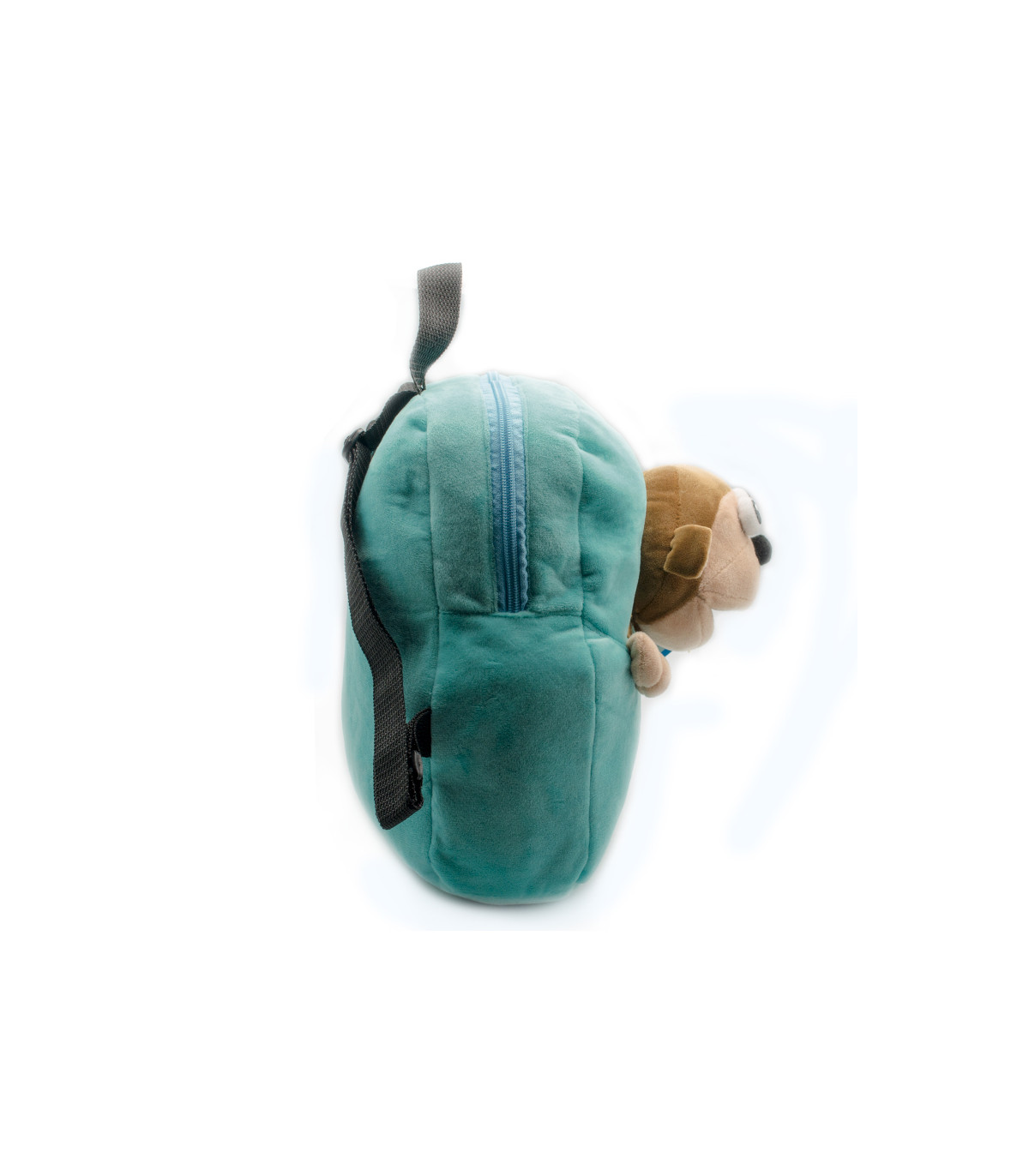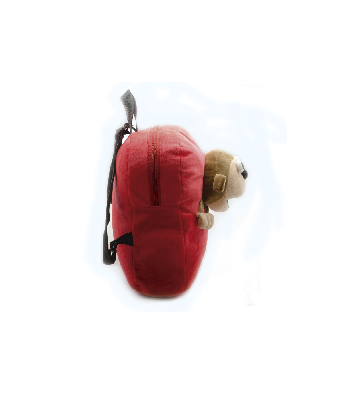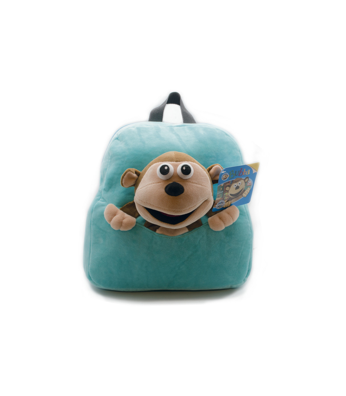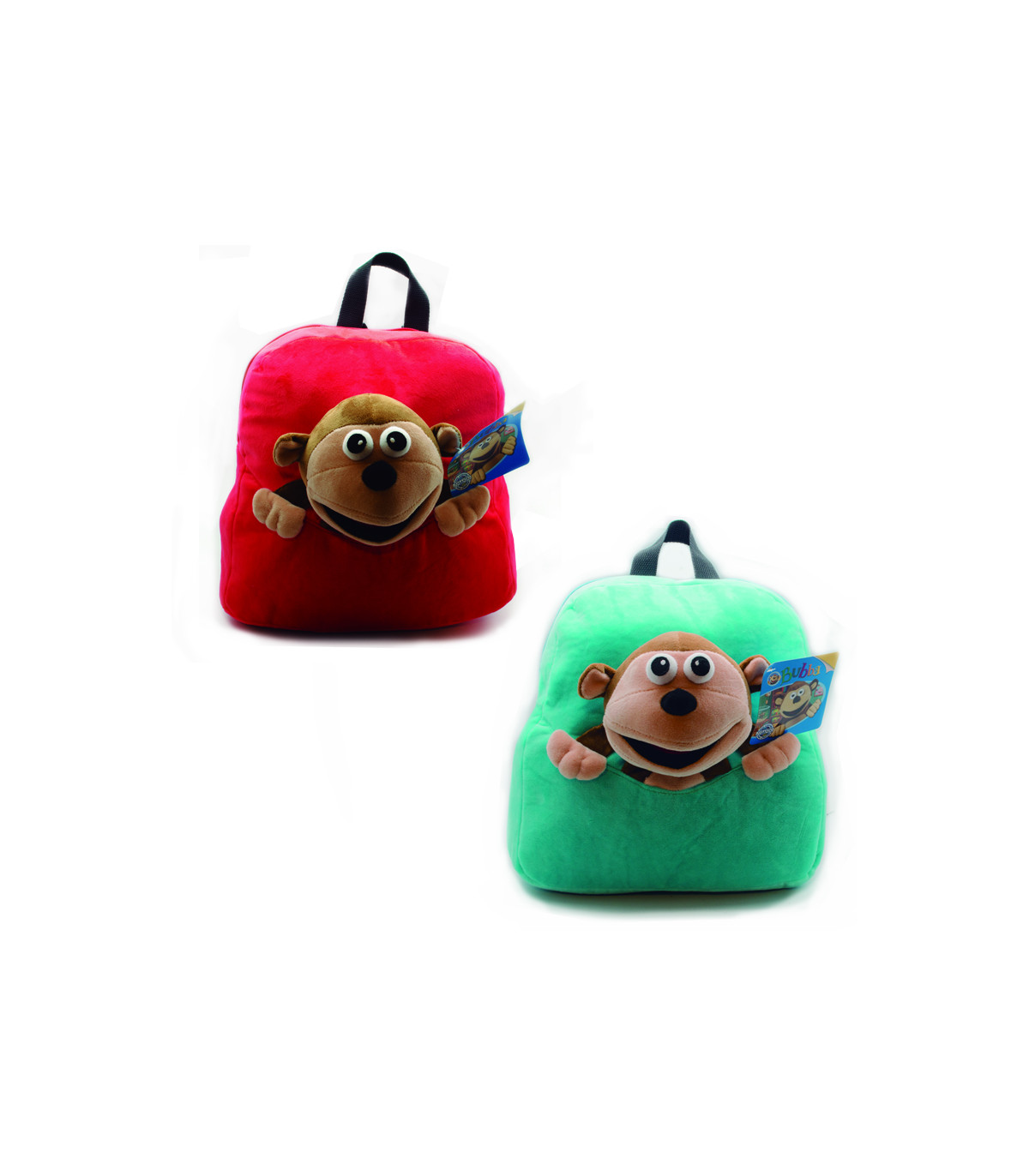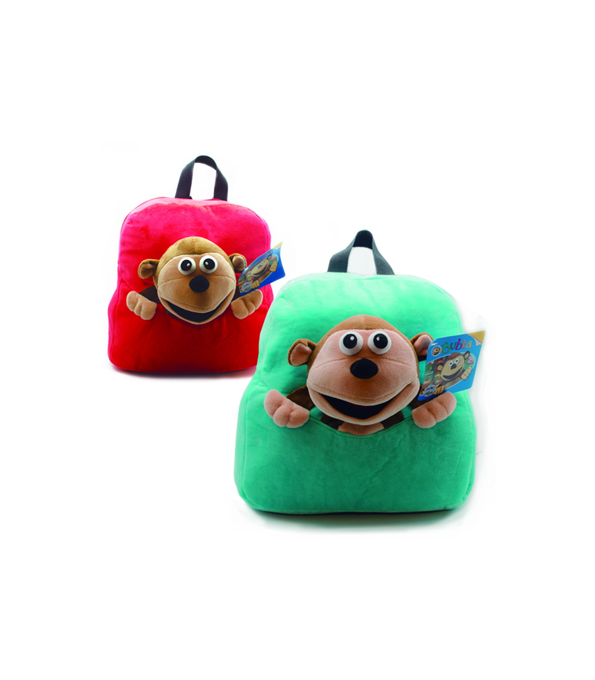 Una mochila de plush de 35 cm de alto con la cara de Bubba. Viene en colores rojo, verde claro o aqua.