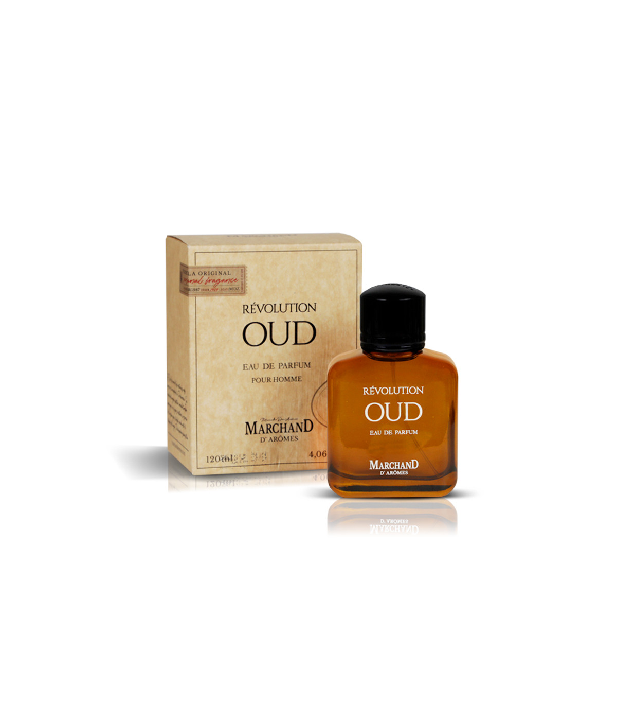 El Oud proviene de la madera del árbol Agar. Cuando es atacado por un hongo, en un largo proceso natural, exuda el oud para defenderse, una resina protectora densa, oscura, intensa y una de las joyas mas caras de la perfumería moderna. Revolution Oud es u