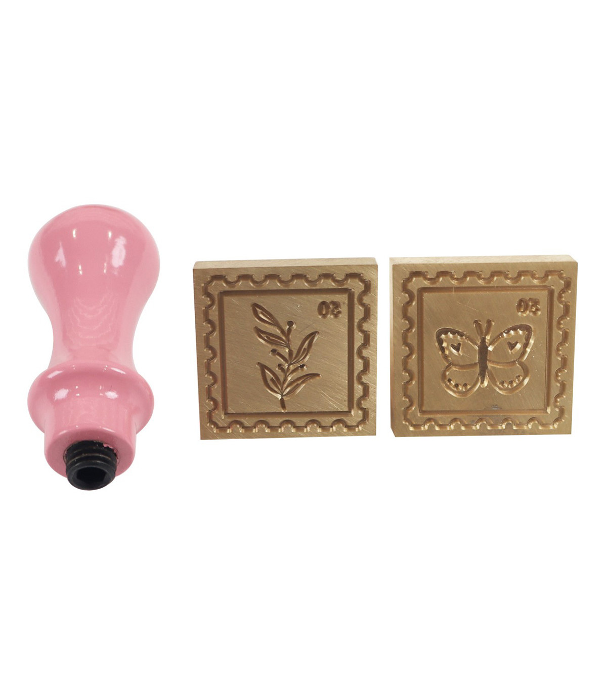 Este kit de sellos contiene mango color Rosa y dos sellos para lacre, mariposa y laurel de aproximadamente 3 x 3 cm cada uno.