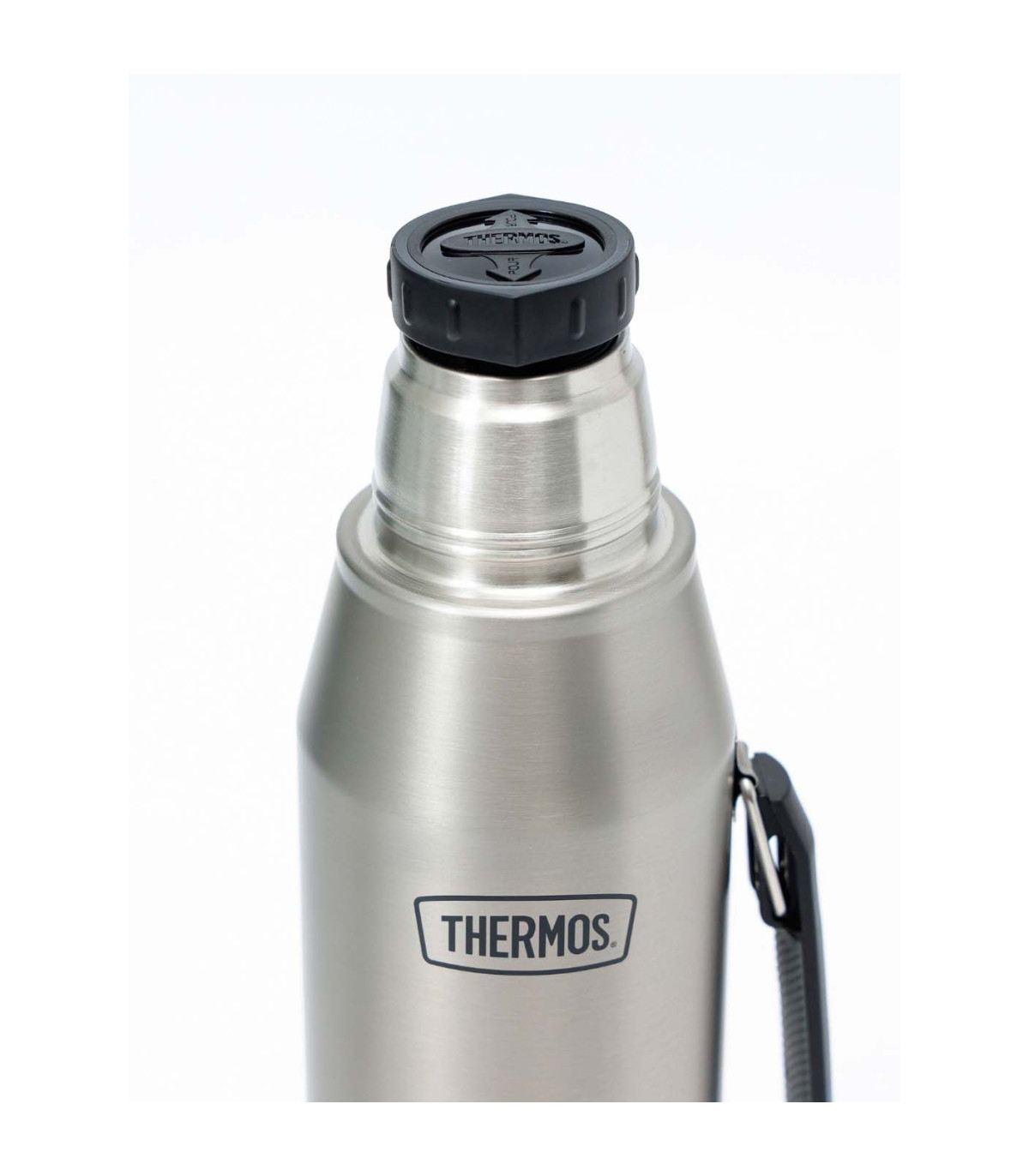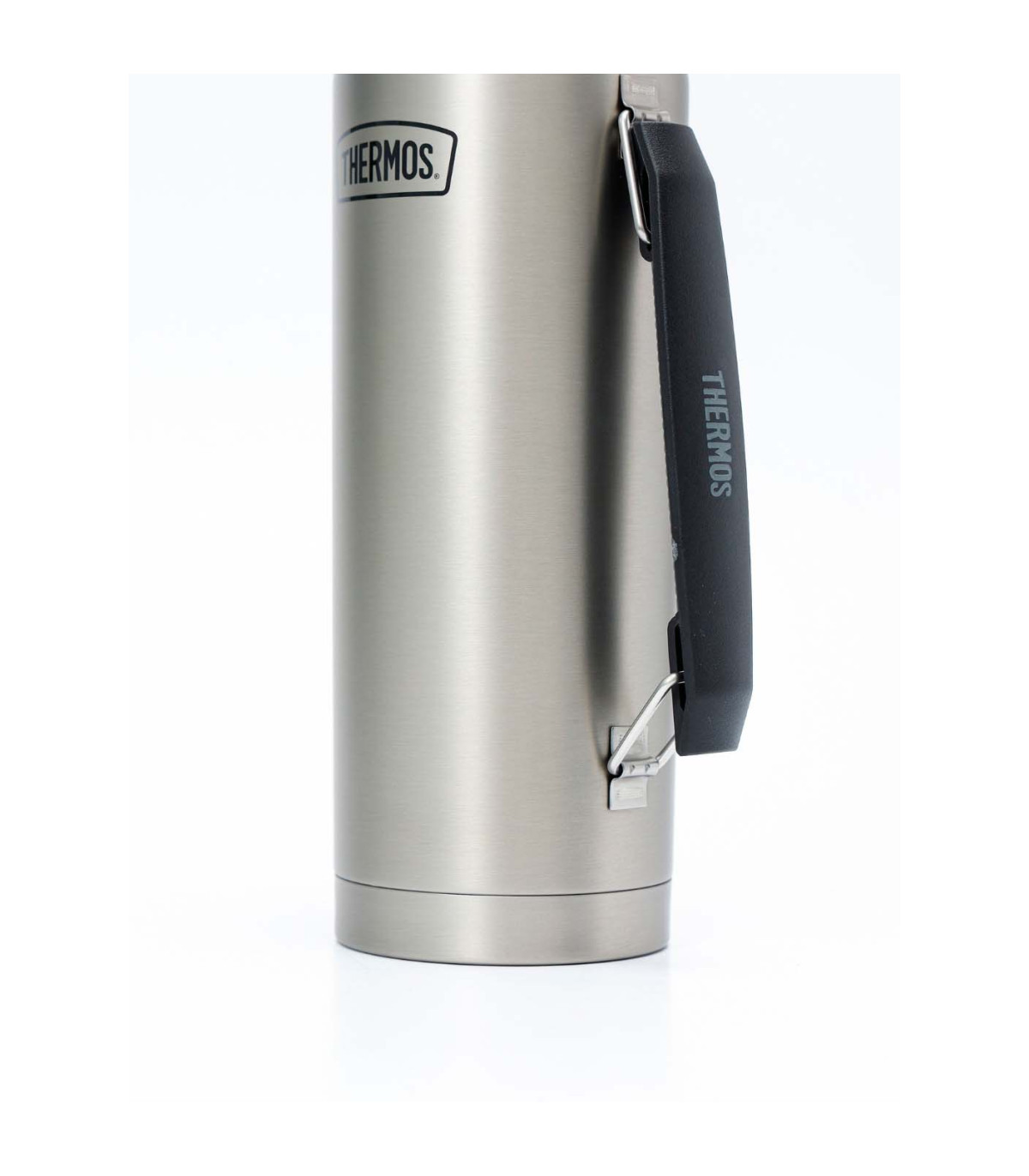 Una botella térmica de 750 ml de acero inoxidable con una práctica manija para llevarla a todos lados. Su tapa a rosca asegura un cierre hermético para evitar derrames. Mantiene bebidas frías o calientes durante horas.