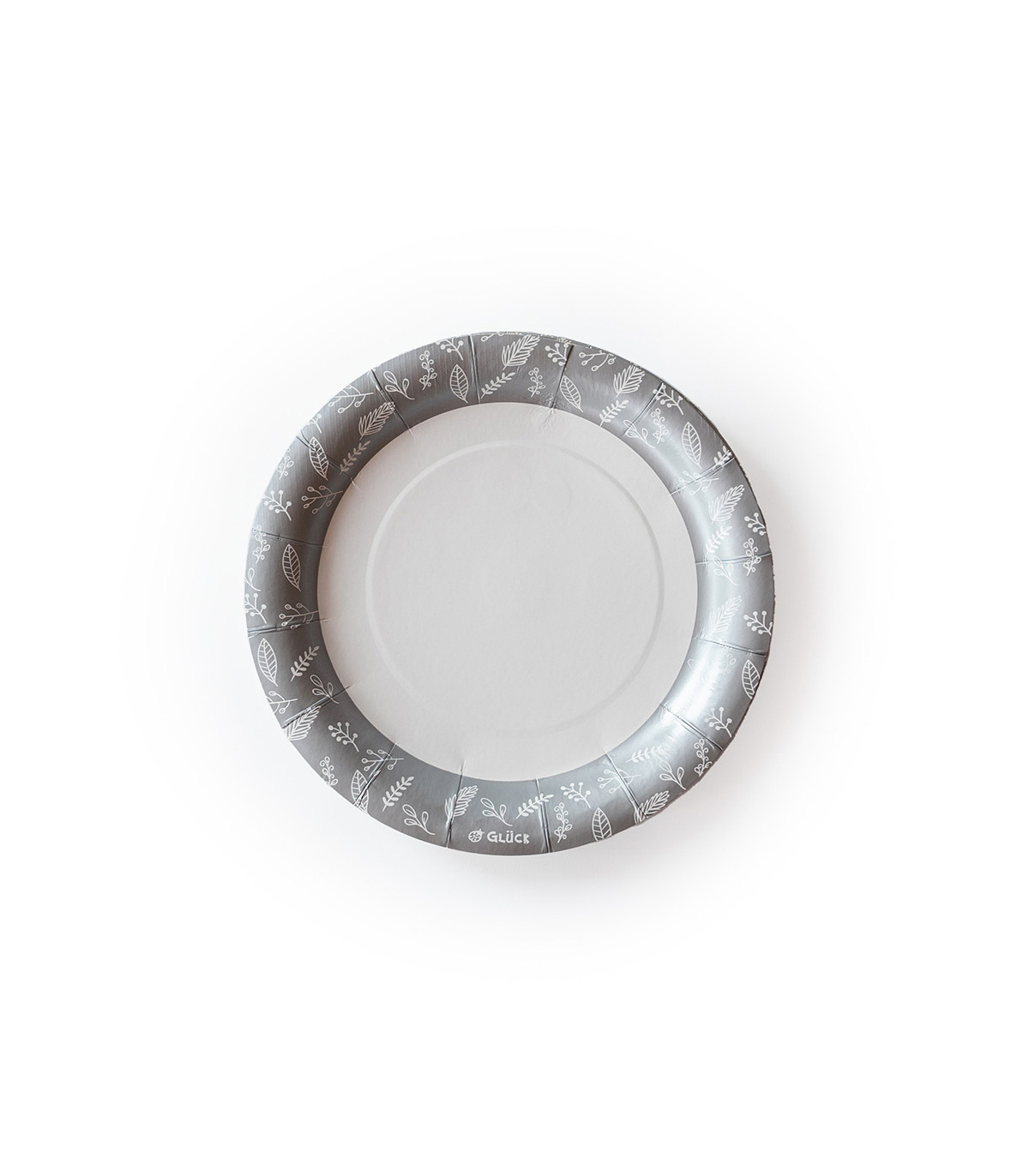 8 platos de cartón de 18 cm de diámetro con stamping dorado para decorar la mesa. Descartables y biodegradables.