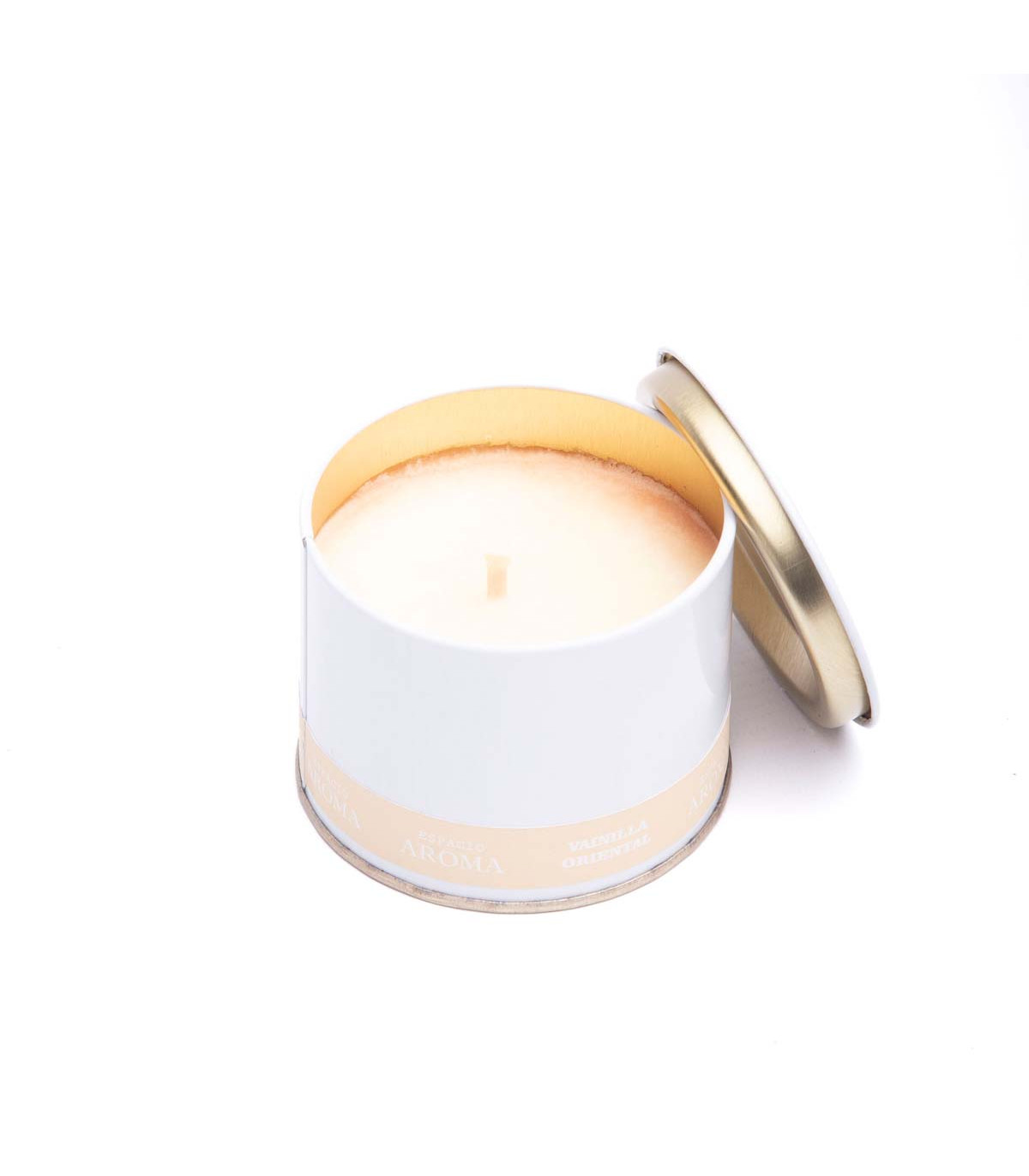Vela aromática de soja en envase metálico, perfecta para acompañarte en viajes o para regalar. Fórmula ecológica y tamaño portátil. El envase conserva el aroma y la calidad del producto, y su pabilo de algodón garantiza una combustión limpia y uniforme.