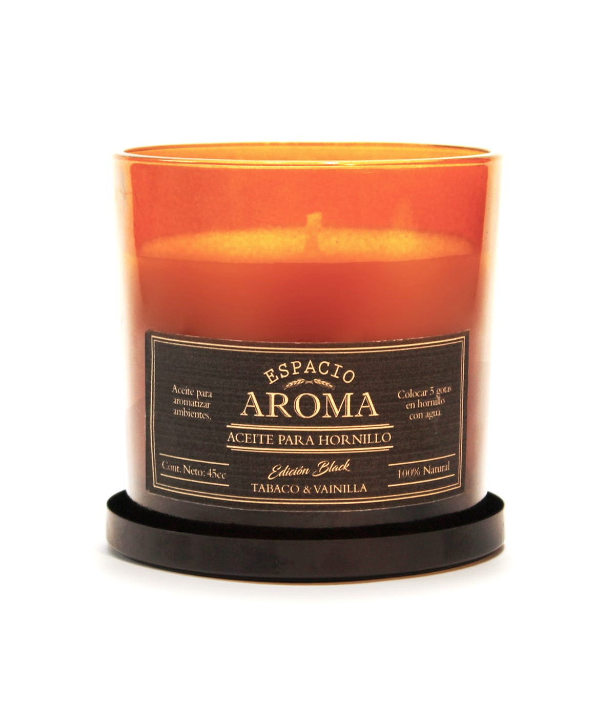 Una vela aromática de soja en envase de vidrio con uno de los aromas favoritos de Espacio Aroma. El pabilo de algodón garantiza una combustión limpia y uniforme.